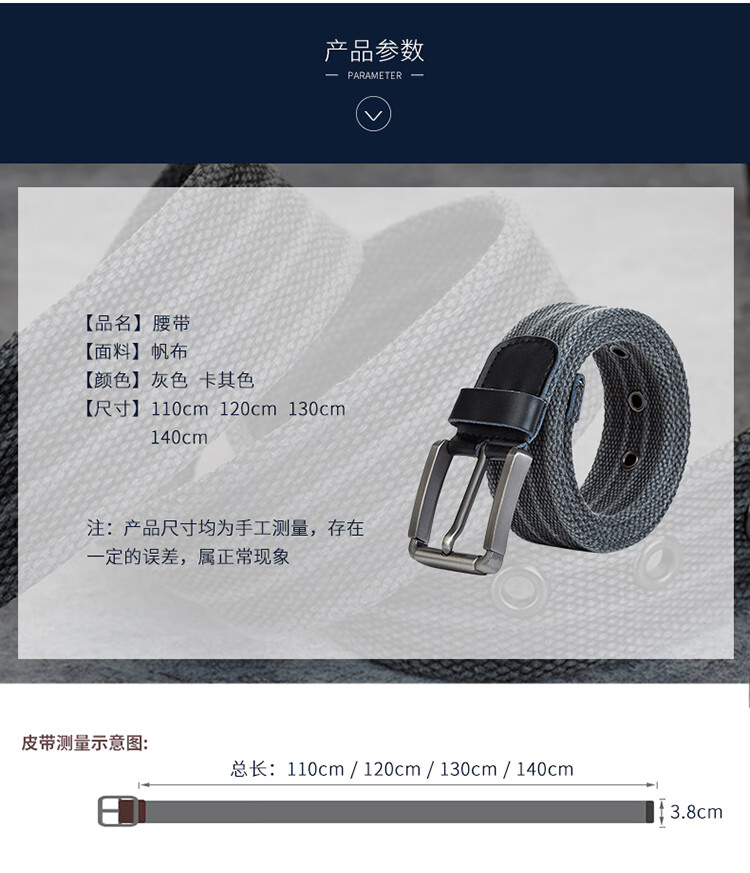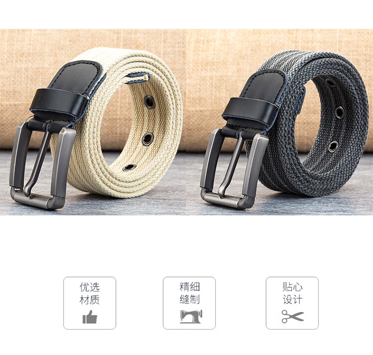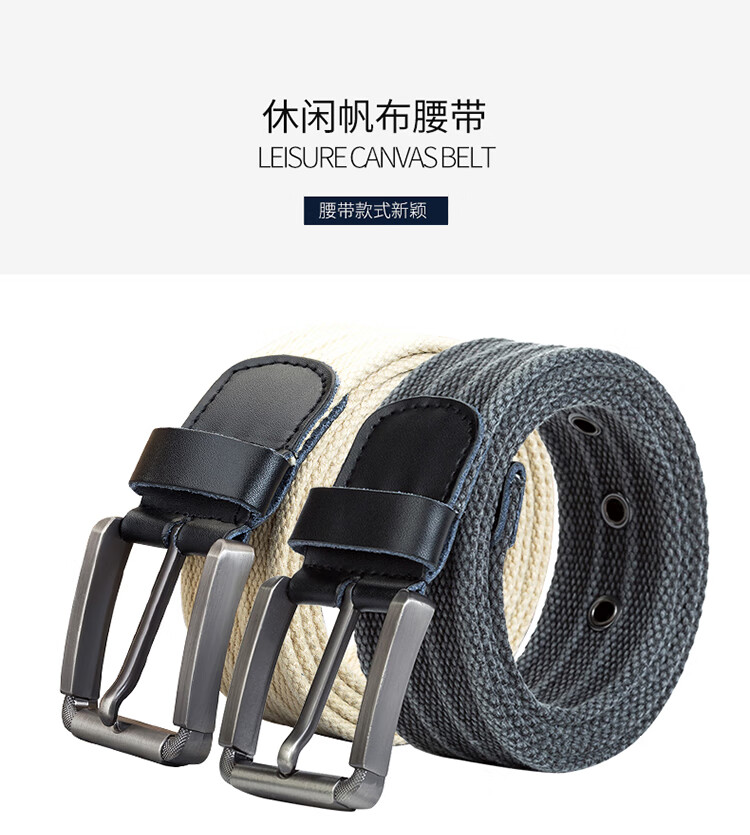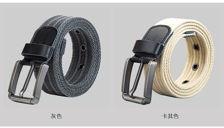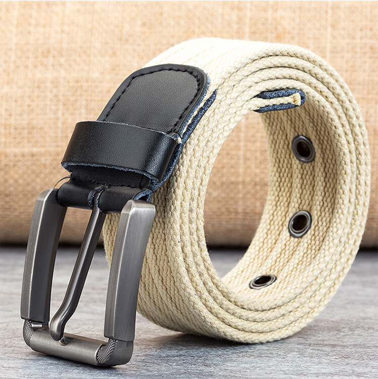 京东自营纪维希 帆布腰带 男士针扣皮带 休闲帆布户外百搭编织裤腰带 浅卡其色 JWXH508 120cm