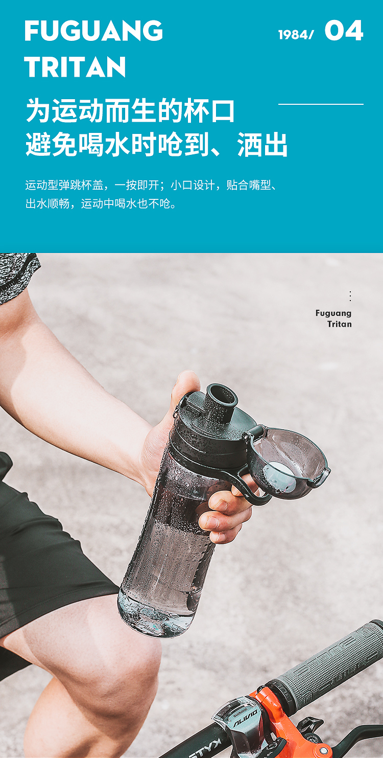京东自营富光 桃花系列塑料杯 tritan材质随手杯子大容量运动水杯防摔 夏季男女运动水壶便携学生水杯小口620ML透明绿