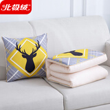 京东自营北极绒(Bejirog)多功能抱枕被子 亚麻风办公室午睡毯两用空调被靠枕汽车靠垫 网格黑鹿头 100*150cm