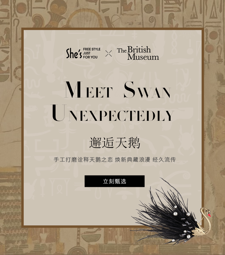 京东自营shes茜子饰品 大英博物馆合作系列 邂逅挚爱 复古鸵鸟毛天鹅胸针胸花女 创意生日礼物 送女友送爱人送妈妈