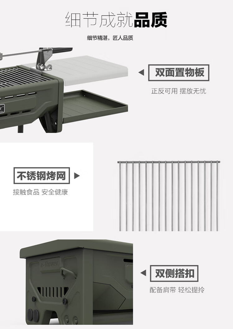 京东自营烧烤世家 户外烧烤炉 烧烤架 加厚炉体叉烤鱼鸡 烤羊肉串 一体收纳 折叠不锈钢烧烤炉 含收纳包