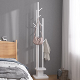 京东自营香木语 实木衣帽架简约现代挂衣架落地卧室小户型卧室衣服置物架 三杆白色