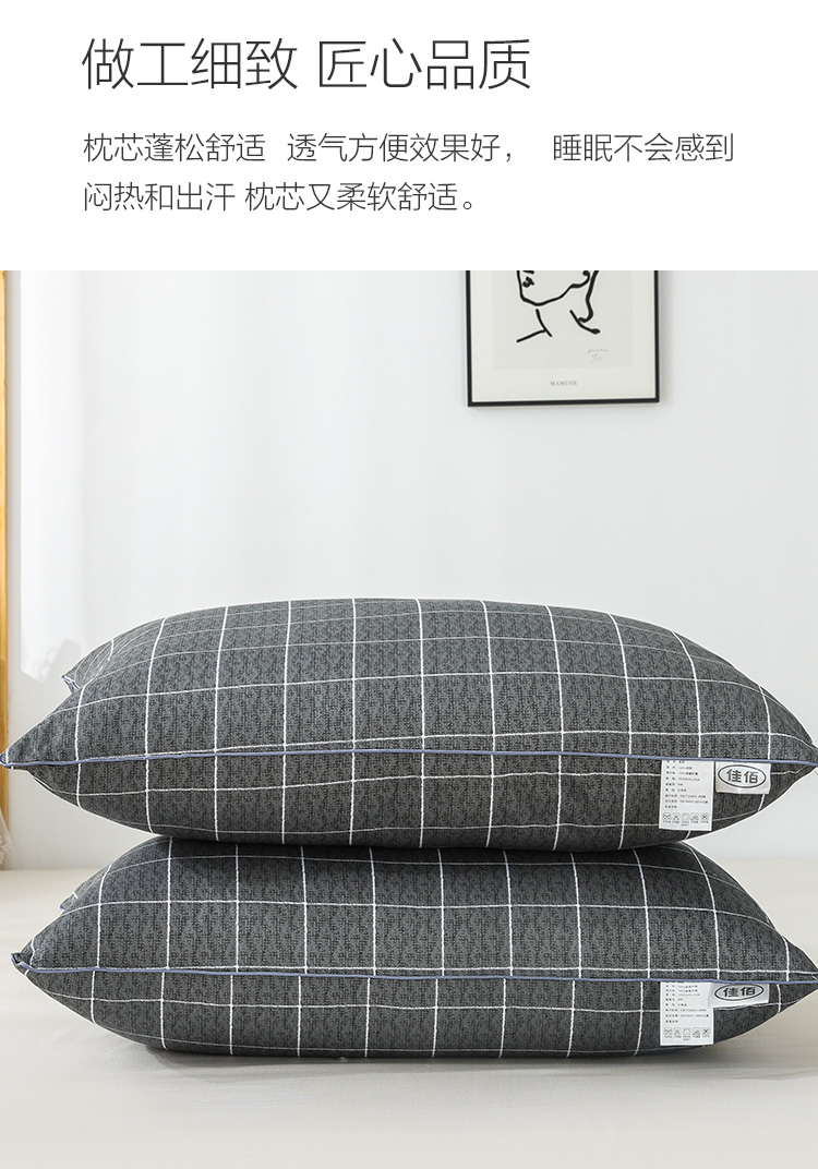 京东自营佳佰 枕头 全棉高弹星级酒店羽丝绒枕芯学生宿舍纯棉安睡枕头芯 格调-黑 45*70cm(一只装)