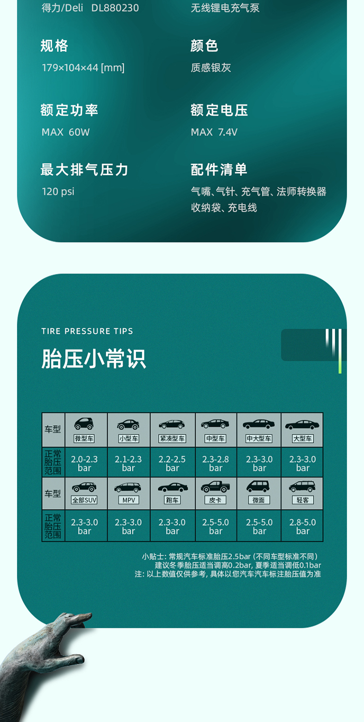 京东自营得力(deli) 车载无线电动充气泵自动充停 汽车轮胎便携式打气泵打气筒 移动电源充电宝功能 DL880230