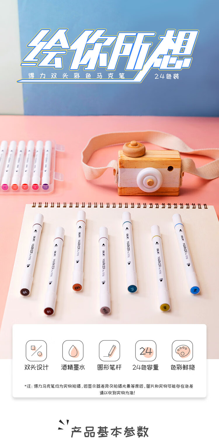 京东自营得力(deli)24色马克笔套装 儿童水彩笔双头绘画彩笔 细杆宝宝画画笔 幼儿涂鸦绘画笔玩具 70700-24