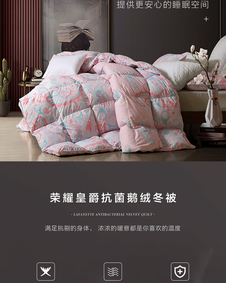 京东自营百丽丝家纺 水星出品 保暖舒适鹅绒杜邦纤维双人冬被 荣耀皇爵 粉红色 220x240cm