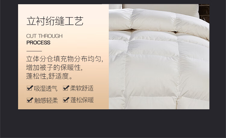 京东自营维科家纺 全棉防跑绒羽毛被羽丝绒被子 双人加厚春秋冬被加厚冬季被褥被芯棉被 200*230cm 6斤 白色