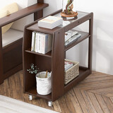 京东自营香木语 实木边几沙发边柜带轮移动角几北欧储物客厅小茶几小桌子卧室床头桌简易小柜子窄几置物架 胡桃色
