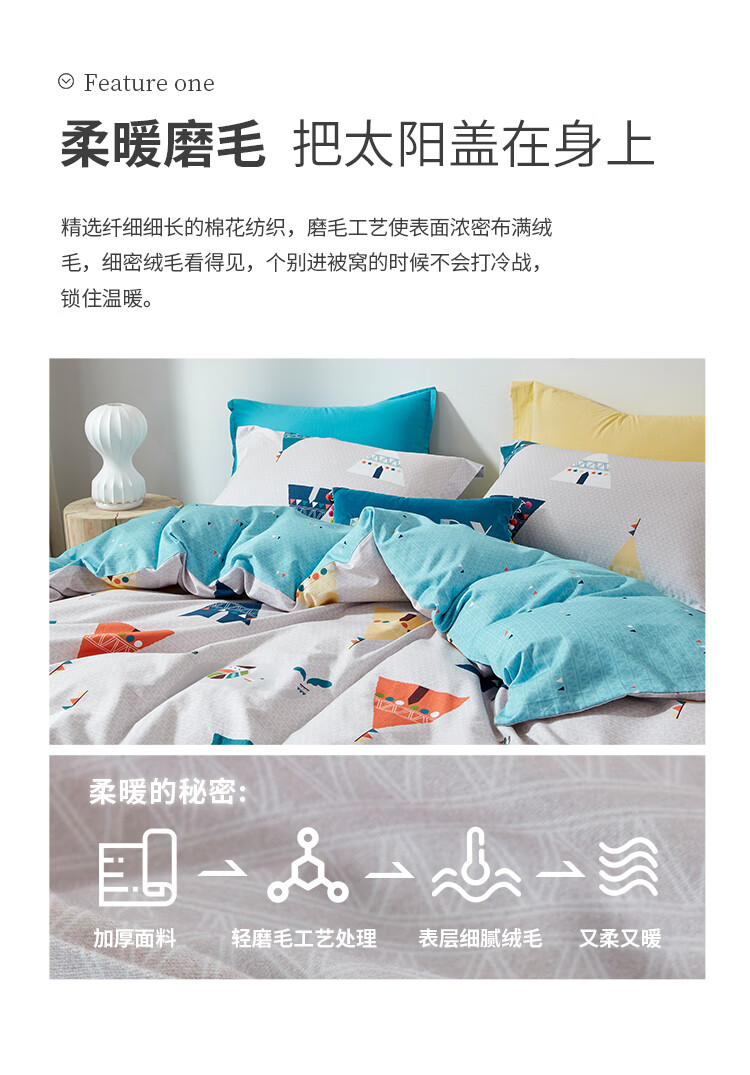 京东自营梦洁家纺MEE 磨毛印花三件套 印第安城堡 1.2米床 150*200cm