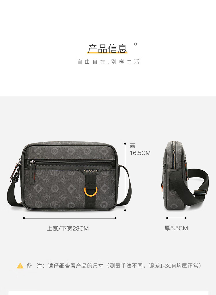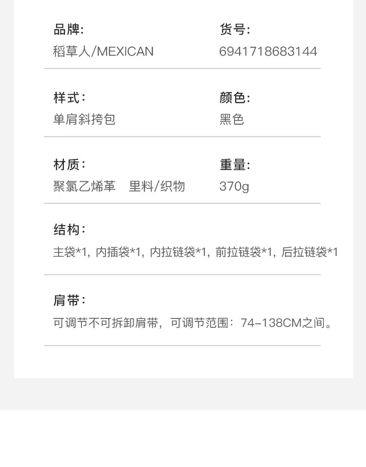京东自营稻草人(MEXICAN)男士单肩斜挎包休闲包百搭邮差包潮流背包时尚MMBD02201350BK01A黑色