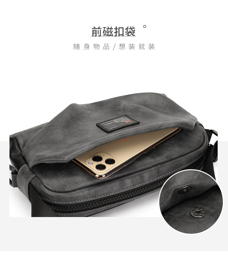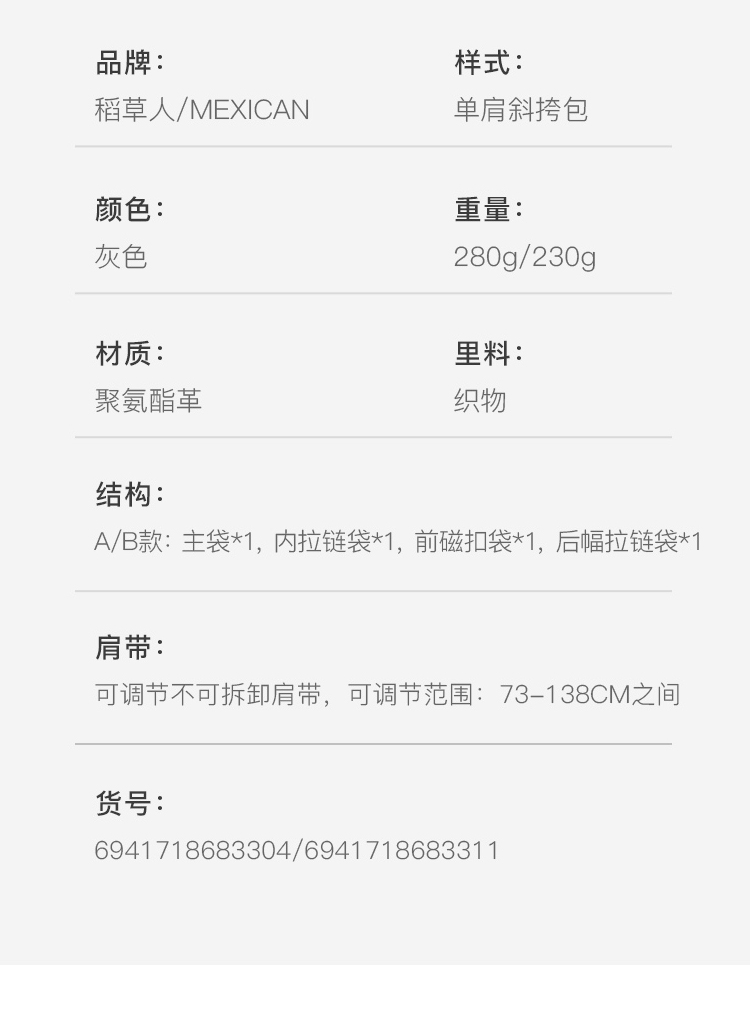 京东自营稻草人(MEXICAN)男士竖款单肩斜挎包休闲包百搭邮差包潮流背包时尚MMBD02201367GY01A灰色