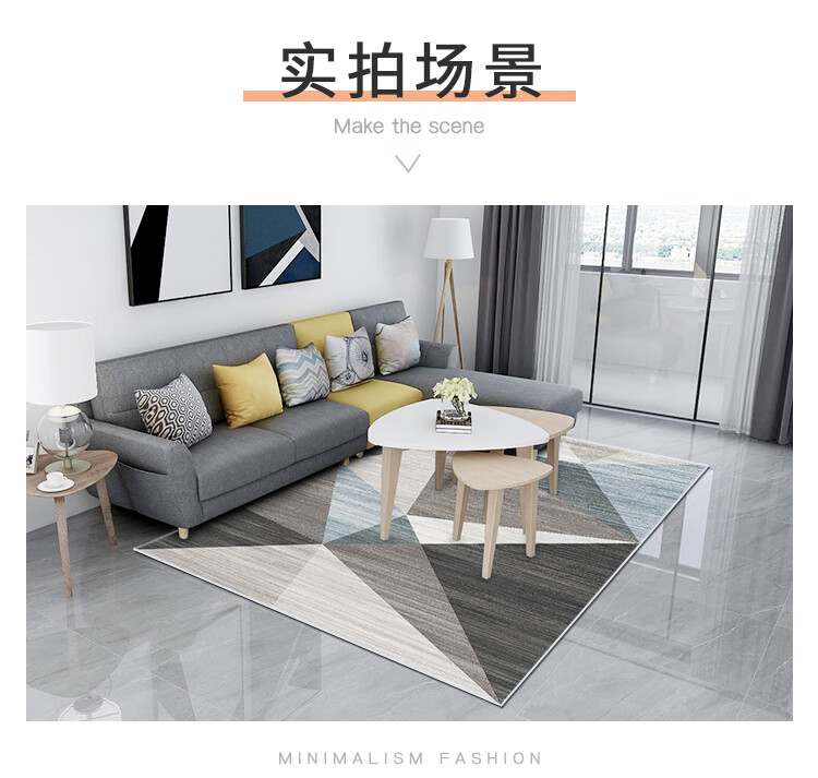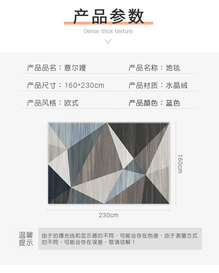 京东自营意尔嫚 地毯 现代简约客厅卧室沙发茶几满铺地毯160*230cm 几何旋律