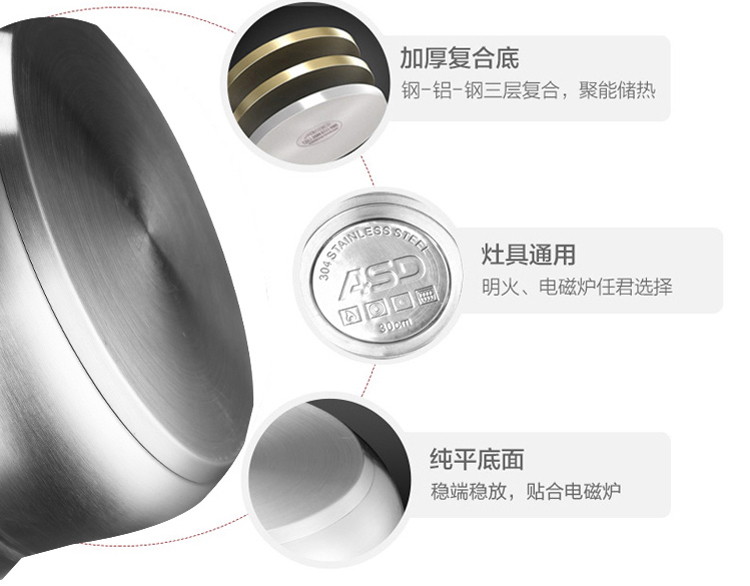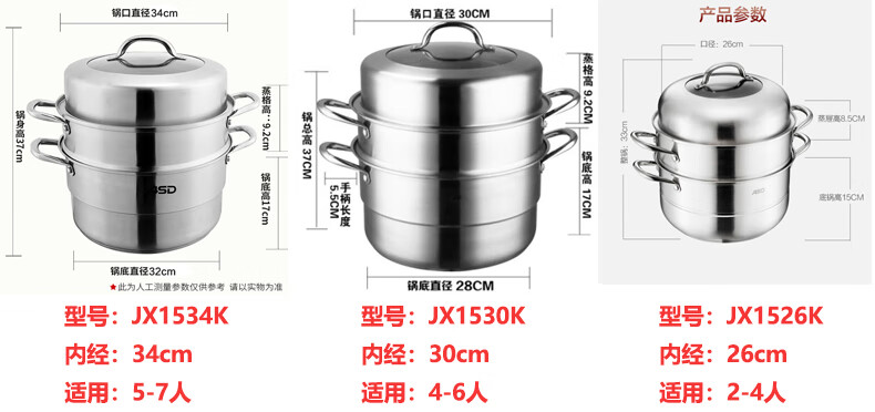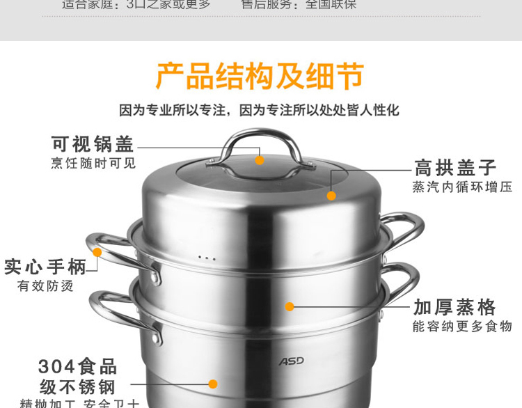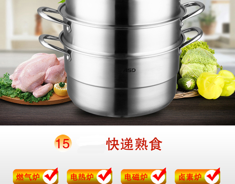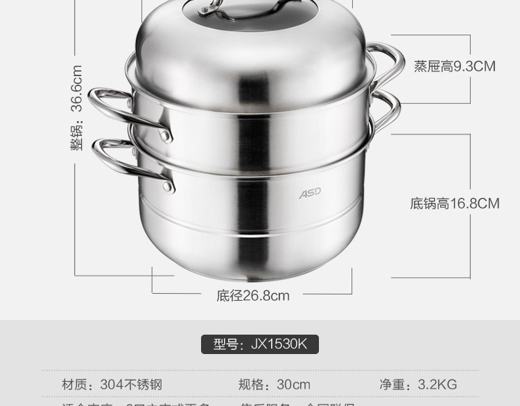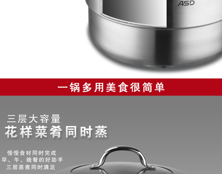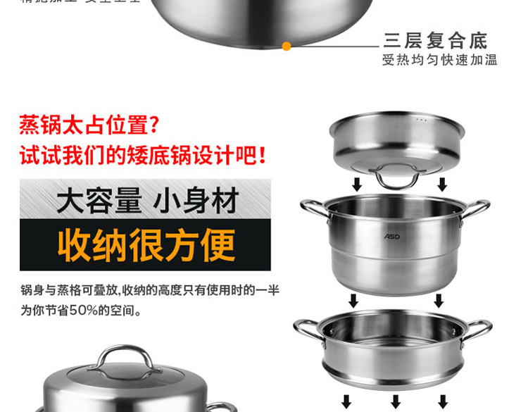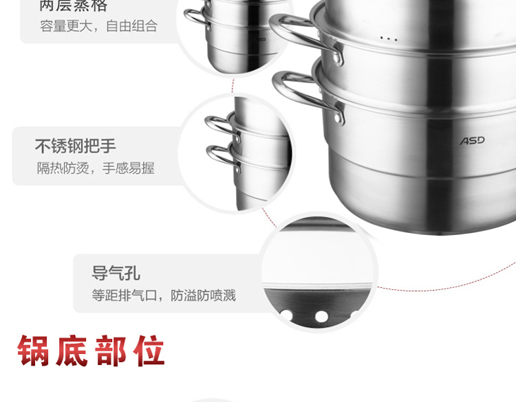 京东自营店长推荐爱仕达 蒸锅 三层30cm 304不锈钢家用大号厚底 带蒸笼/蒸屉 电磁炉明火通用
