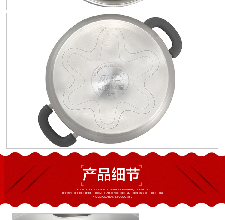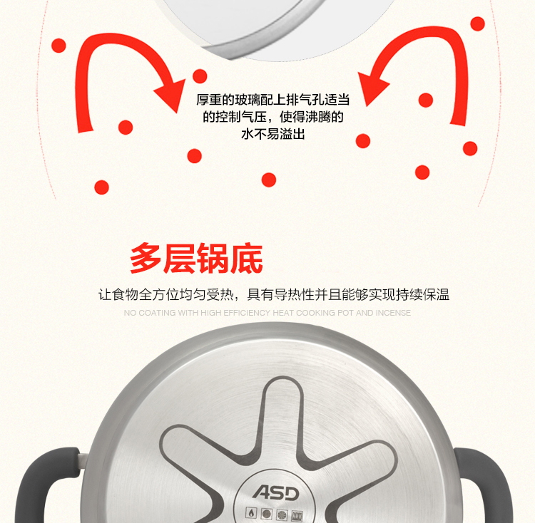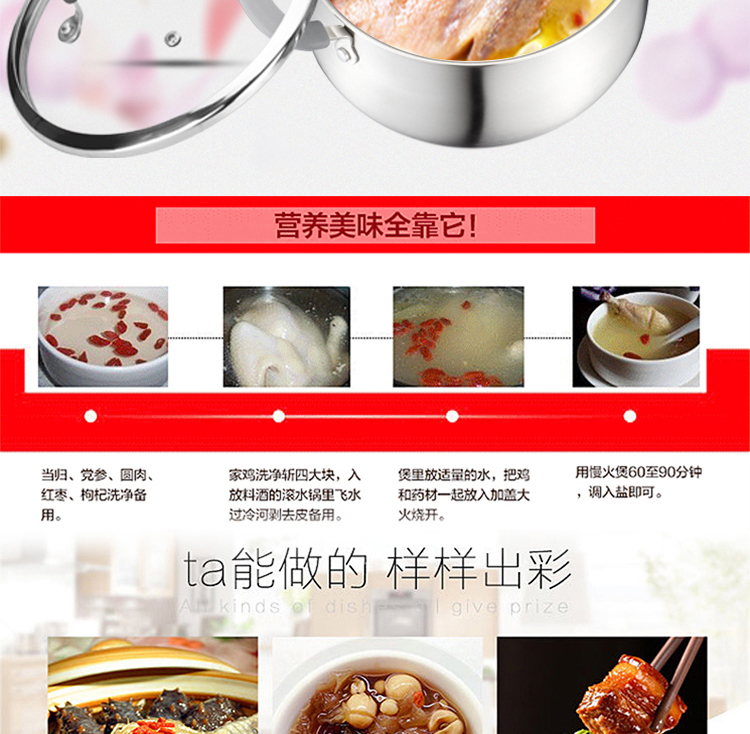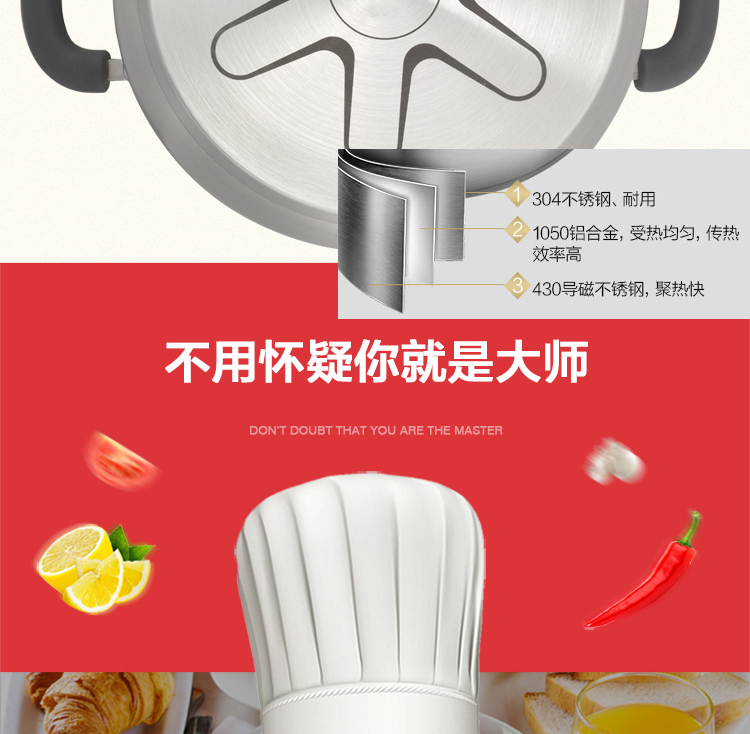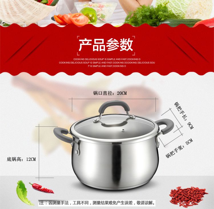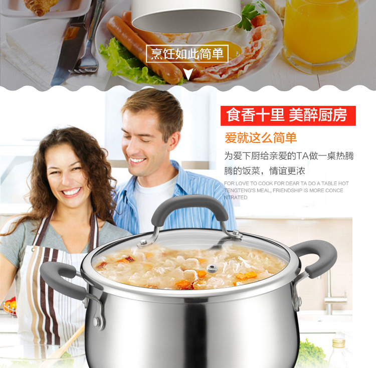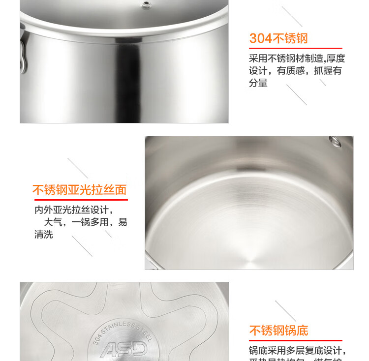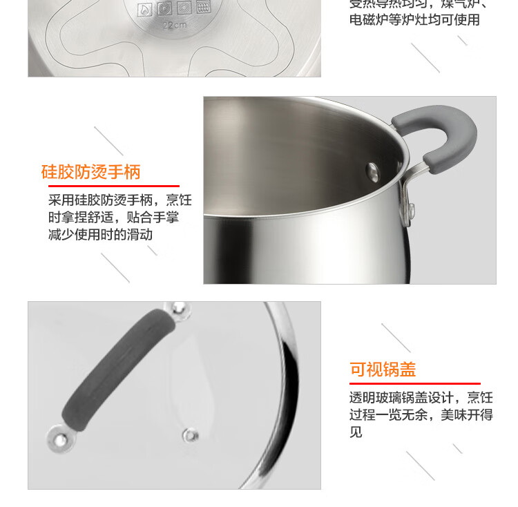 京东自营商超同款爱仕达 汤锅 304不锈钢20cm 炖汤/煲汤火锅小 厚底电磁炉燃气通用GL1720B