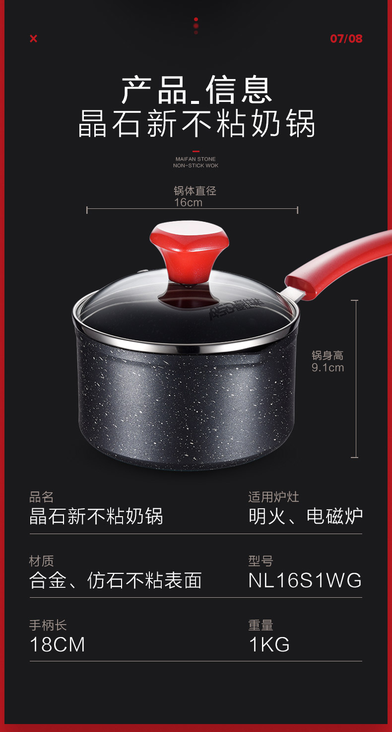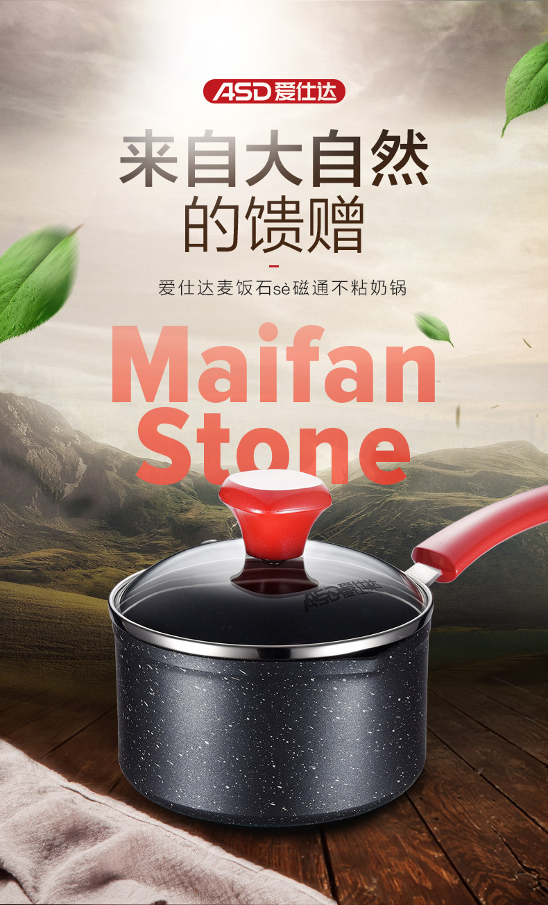 京东自营爱仕达 奶锅 不粘锅 宝宝婴儿辅食锅16cm 麦饭石色泡面煮热奶汤锅 电磁炉明火通用NL16S1WG