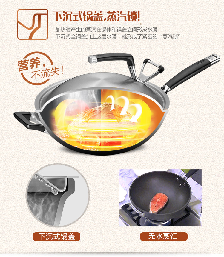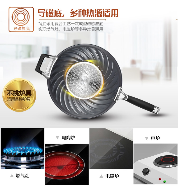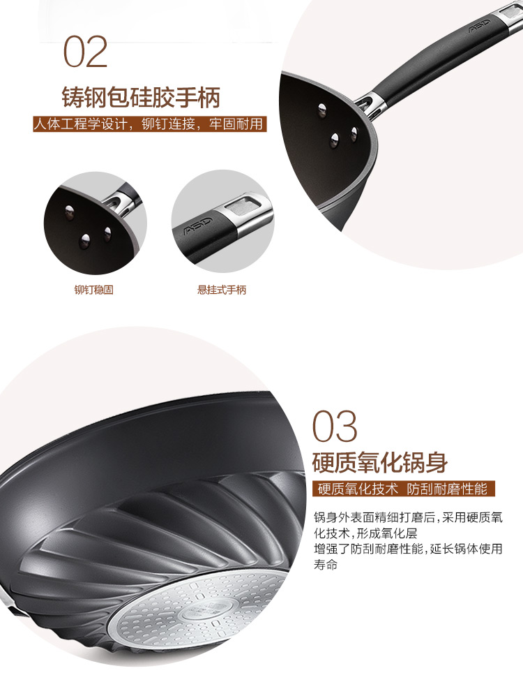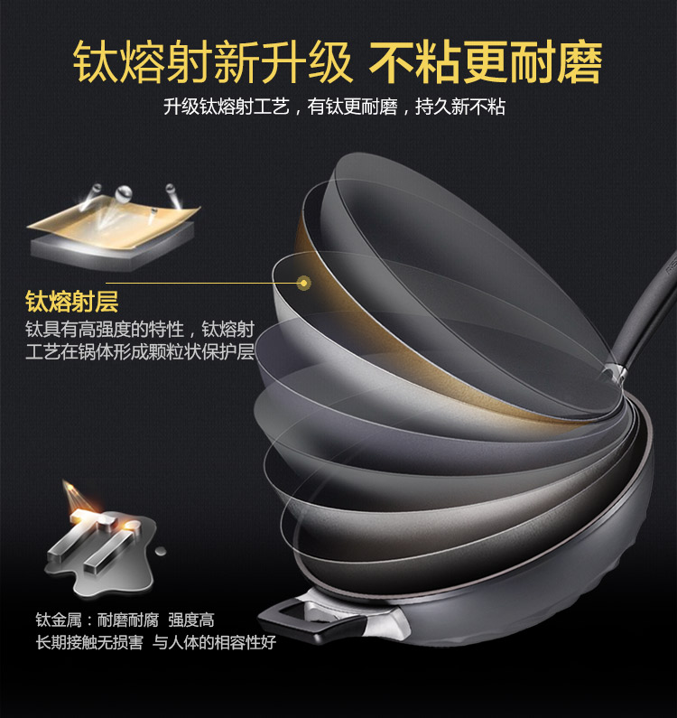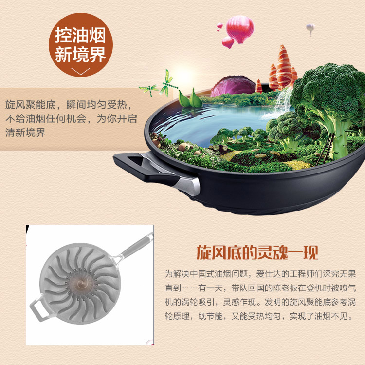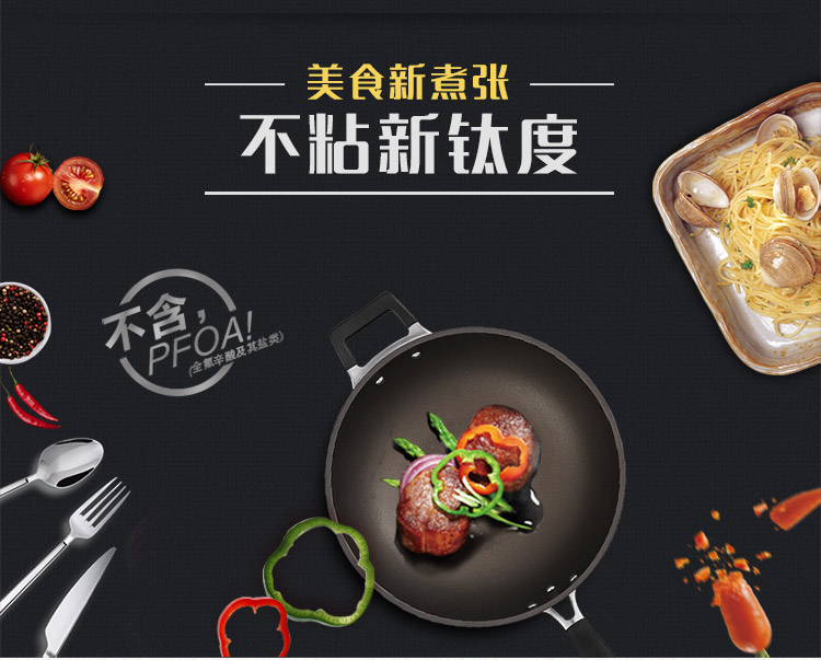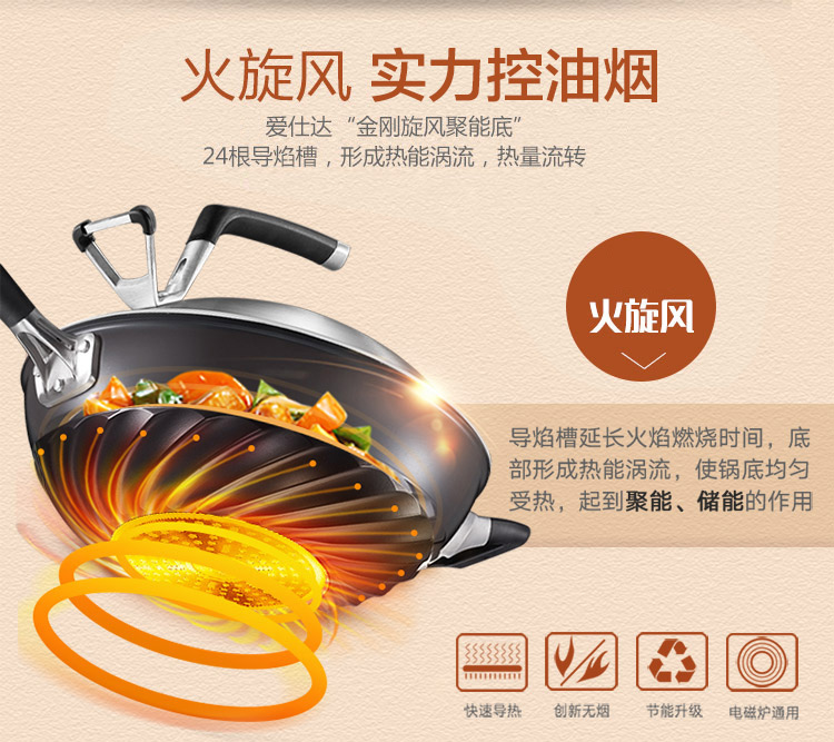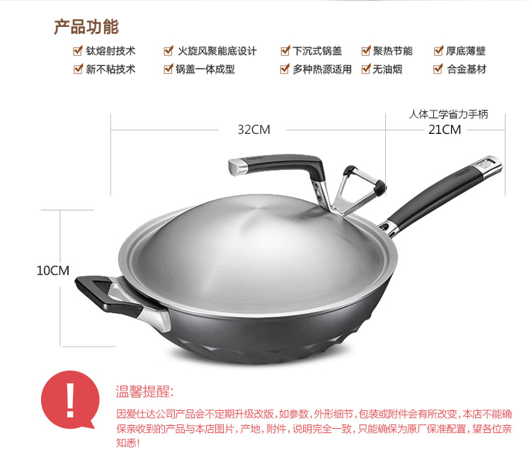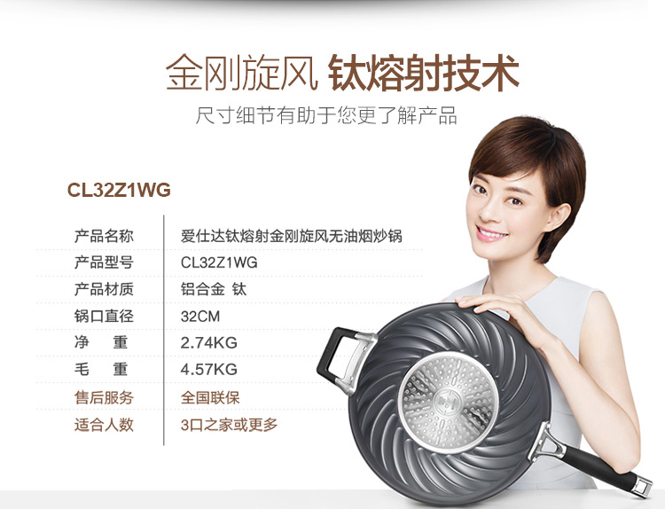 京东自营爱仕达 炒锅 不粘锅32cm 无油烟炒菜锅/钛不粘 家用不沾炒煎锅CL32Z1WG 电磁炉明火通用