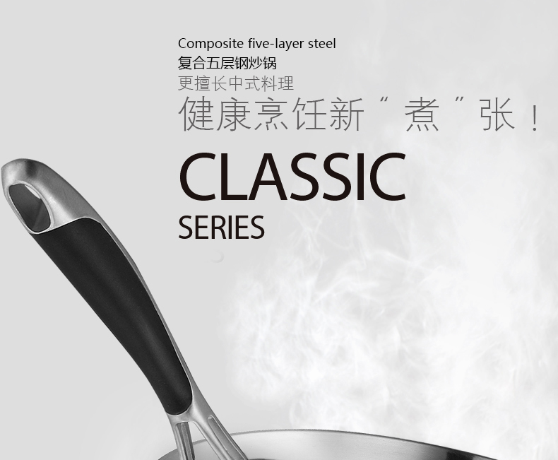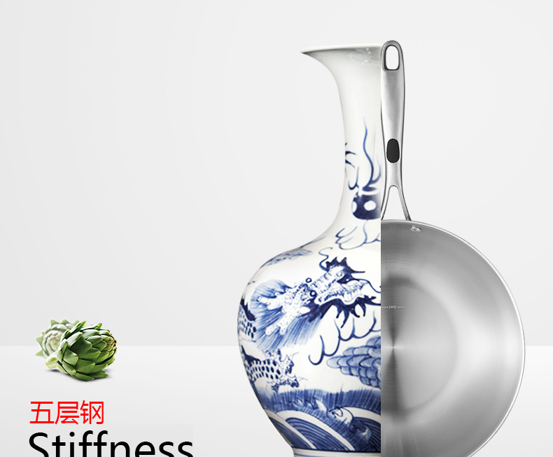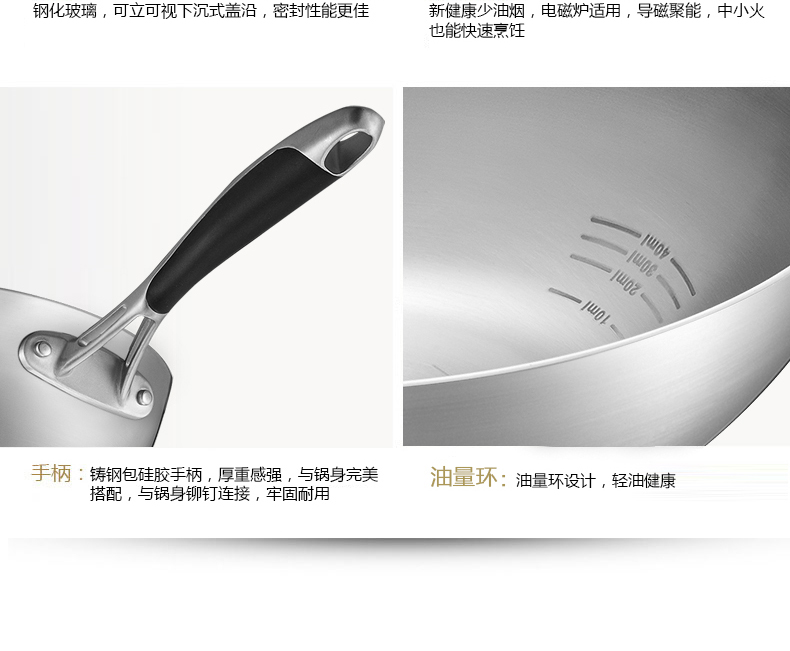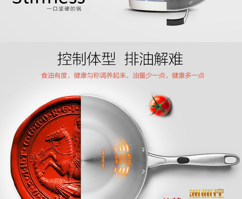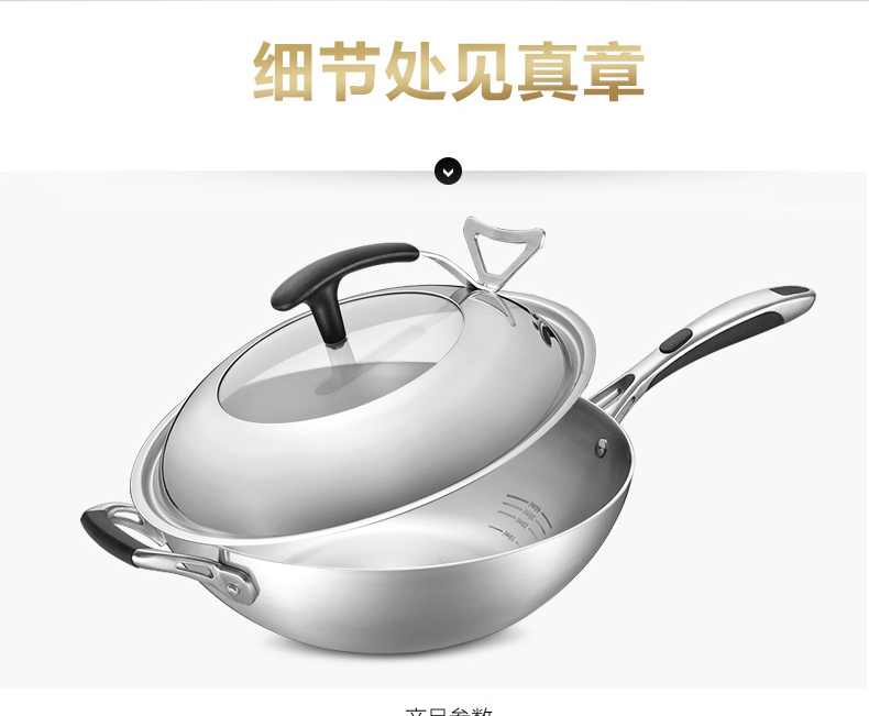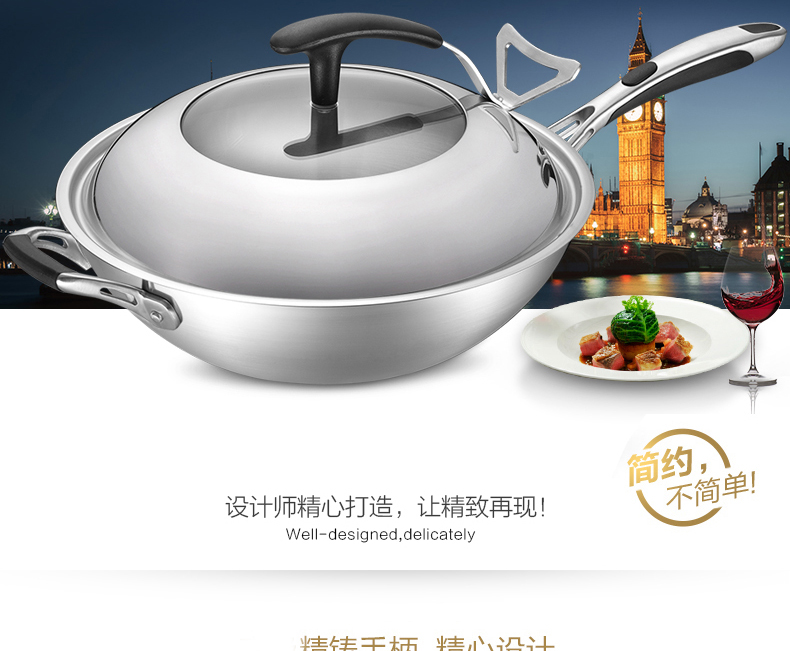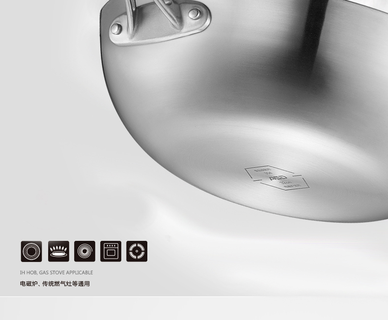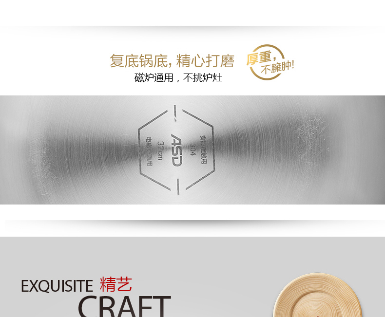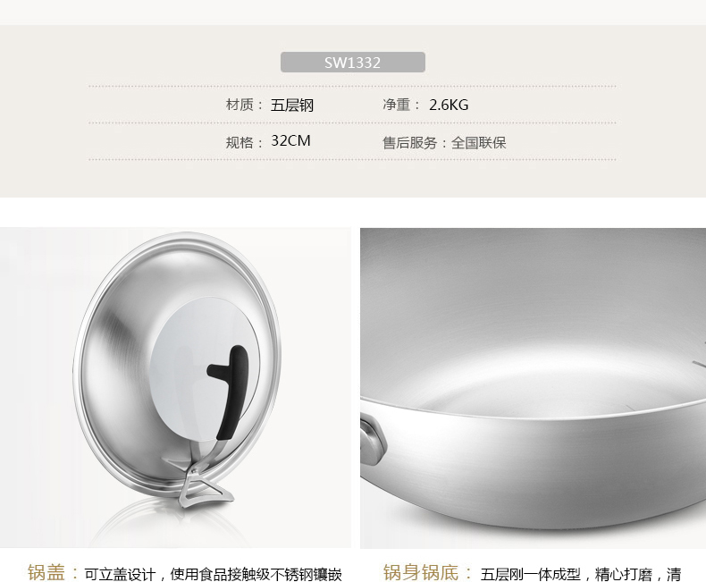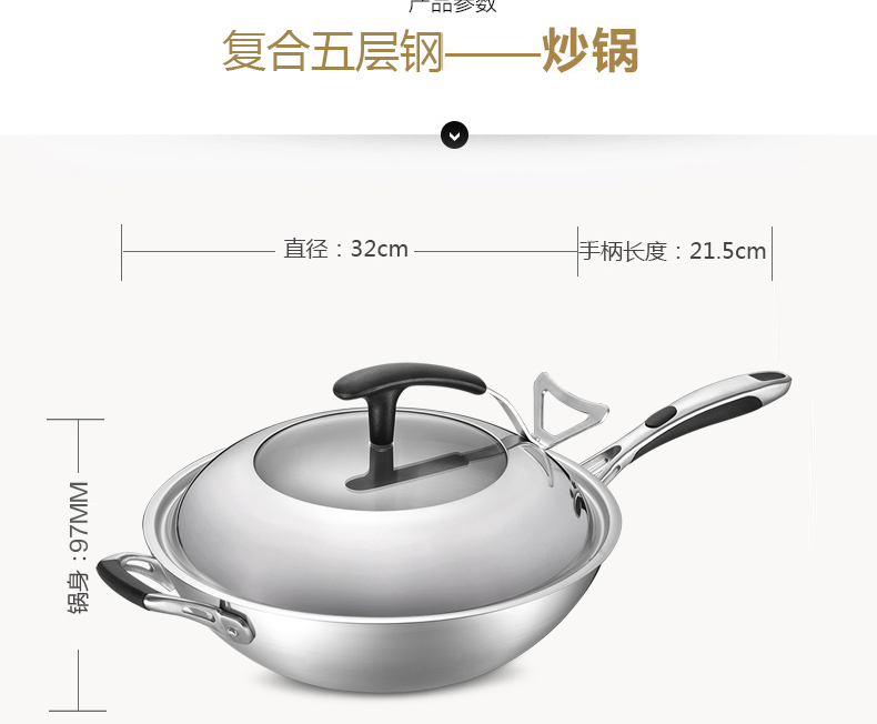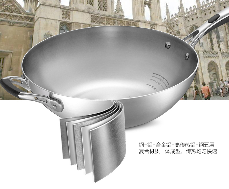 京东自营热卖爱仕达 炒锅 不锈钢304 32cm无烟无涂层炒菜锅 五层复合钢炒煎锅 电磁炉明火通用