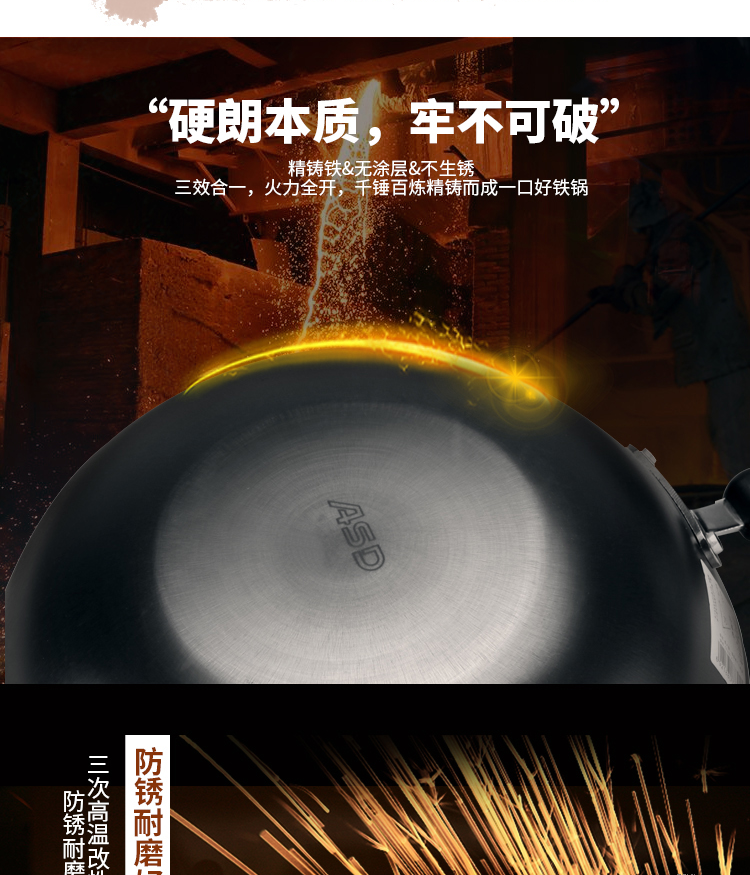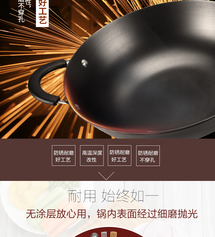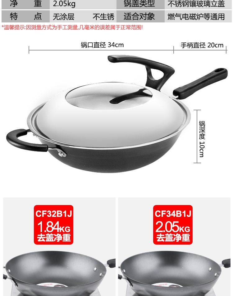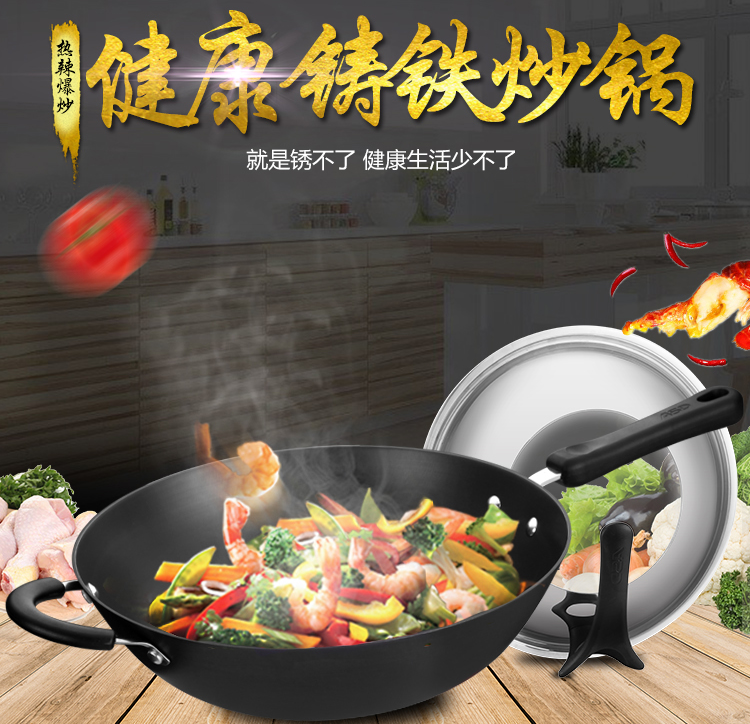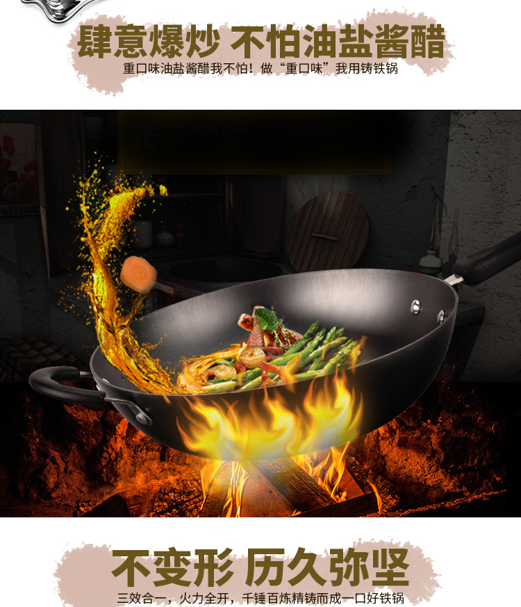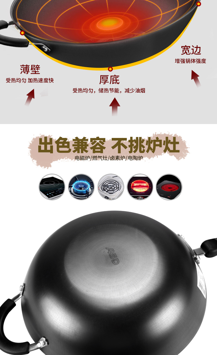 京东自营爱仕达 炒锅 铁锅/无涂层 34cm铸铁炒菜锅锈不了平底炒煎锅CF34B1J 电磁炉明火通用