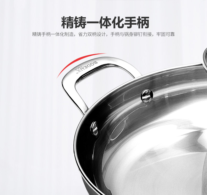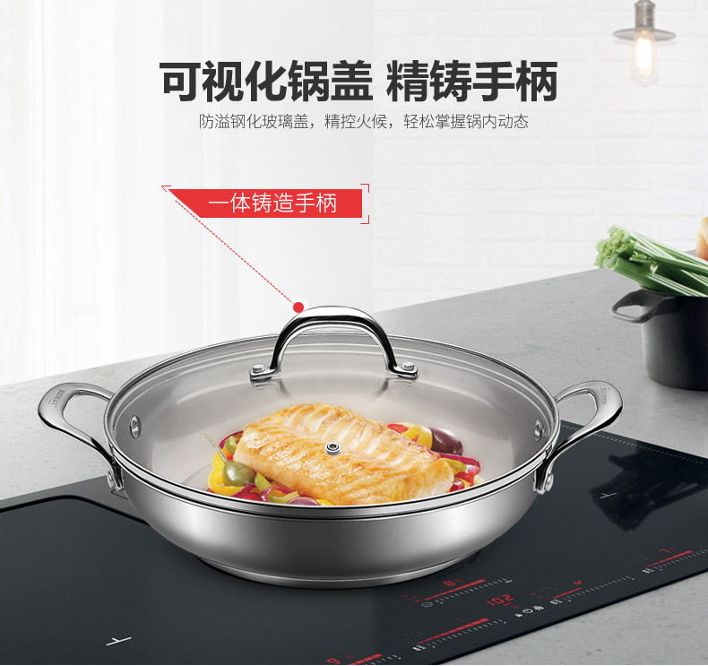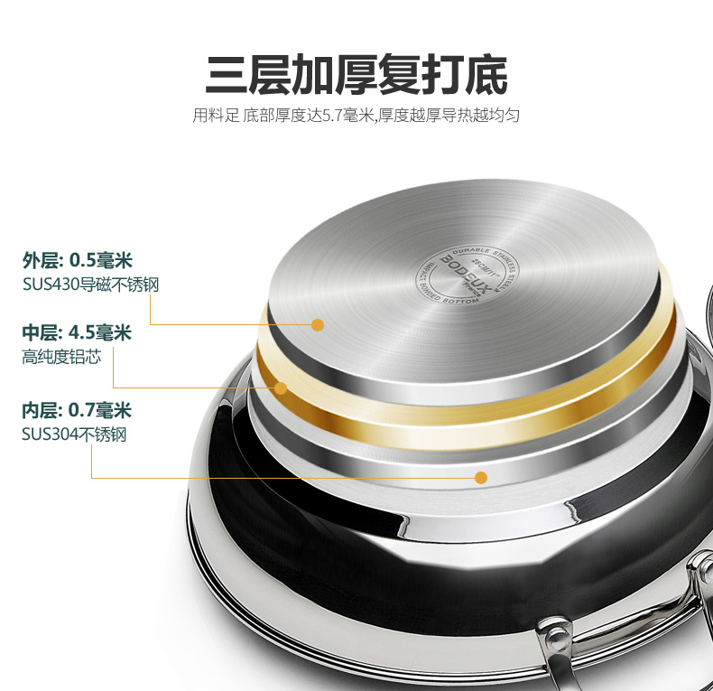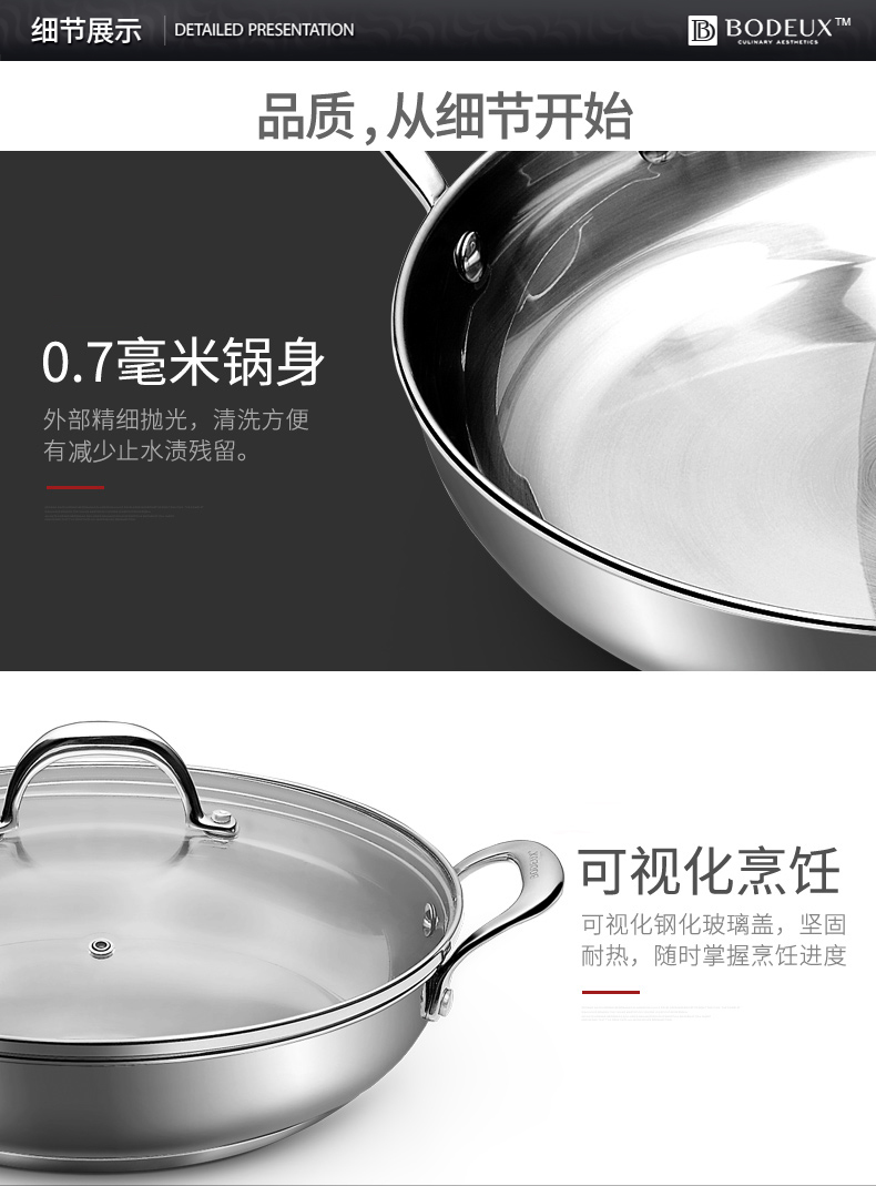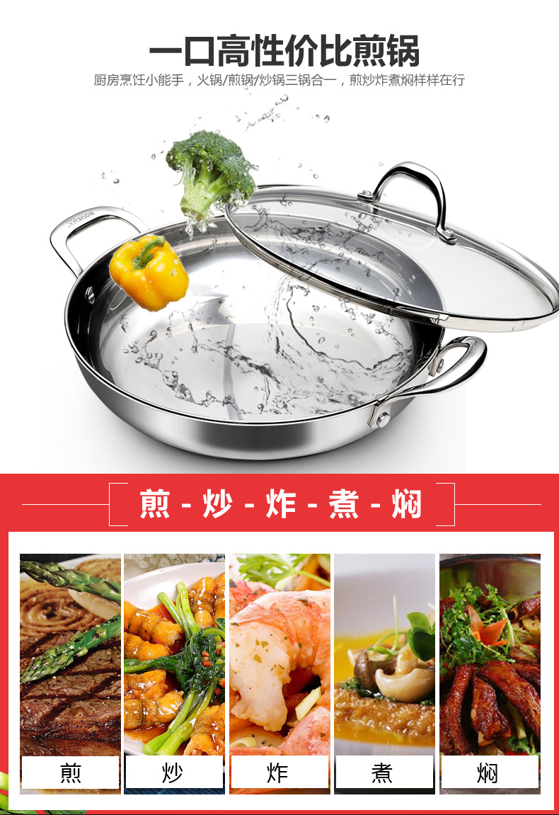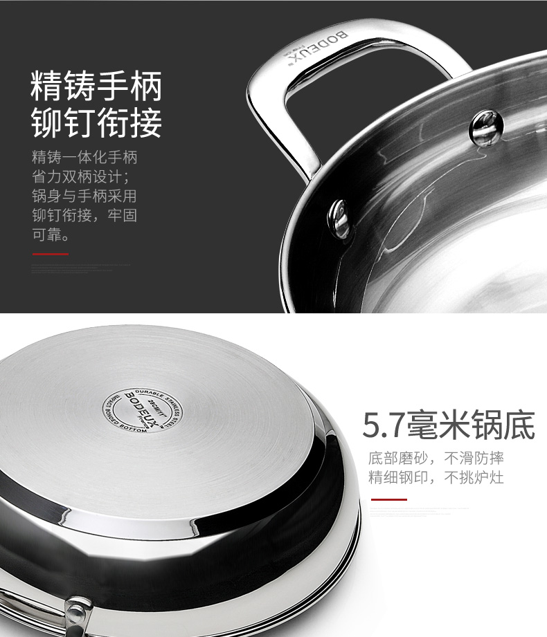 京东自营铂帝斯(BODEUX) 多功能煎锅28CM 电磁炉燃气304不锈钢平底锅