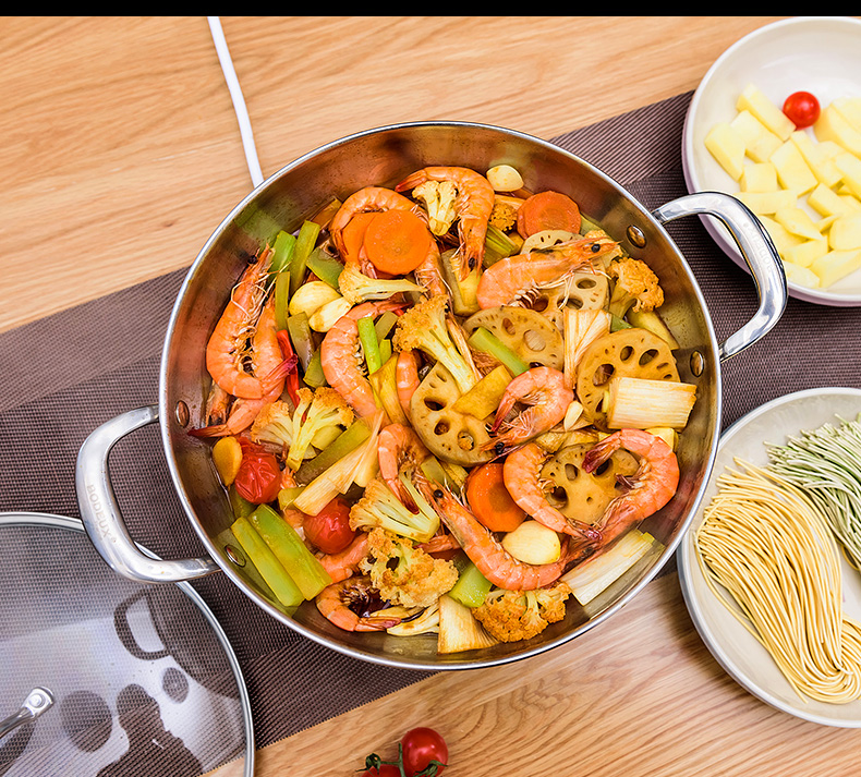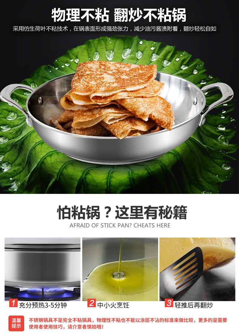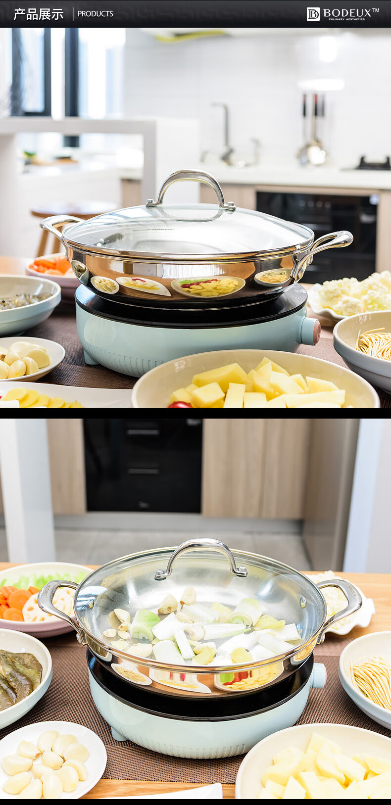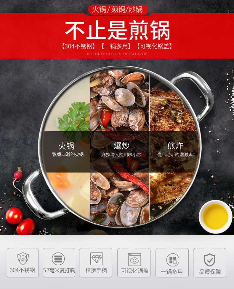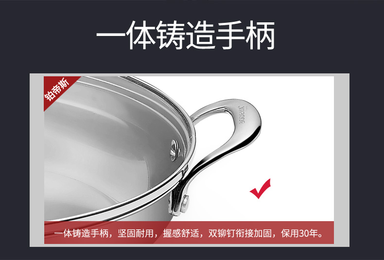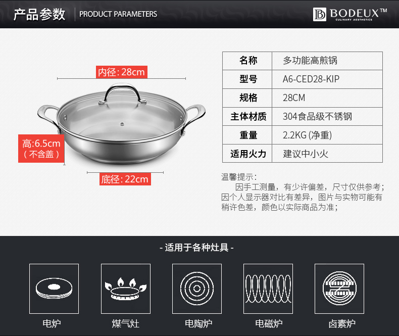 京东自营铂帝斯(BODEUX) 多功能煎锅28CM 电磁炉燃气304不锈钢平底锅