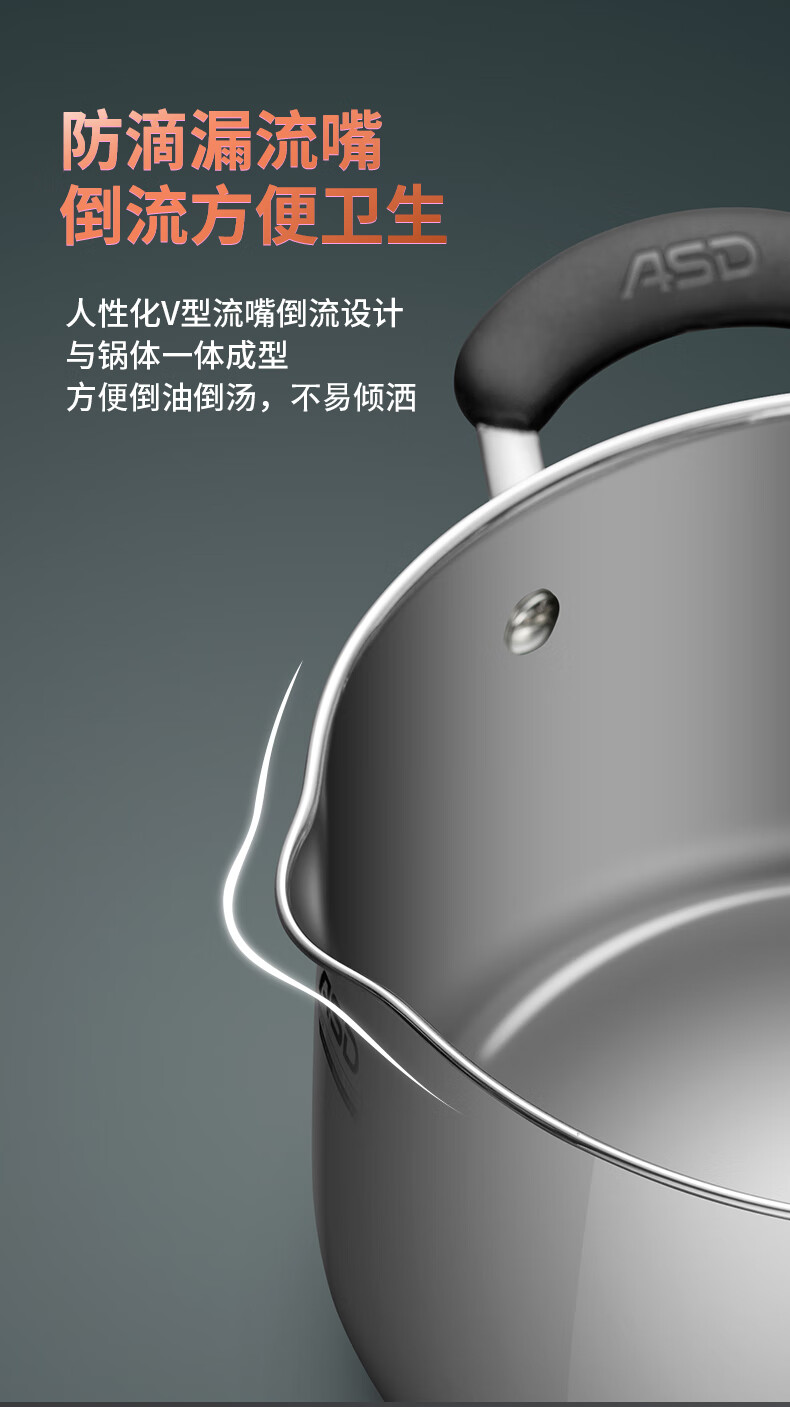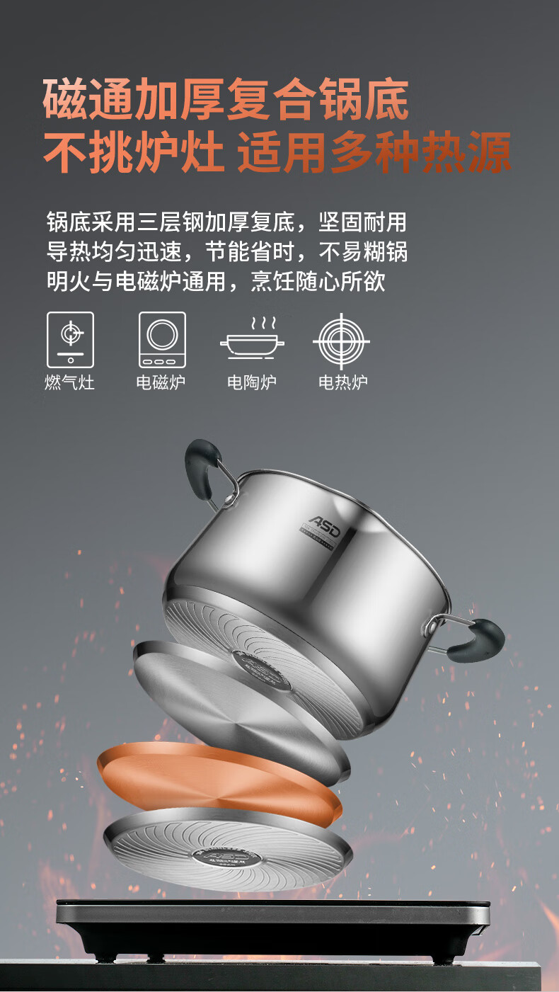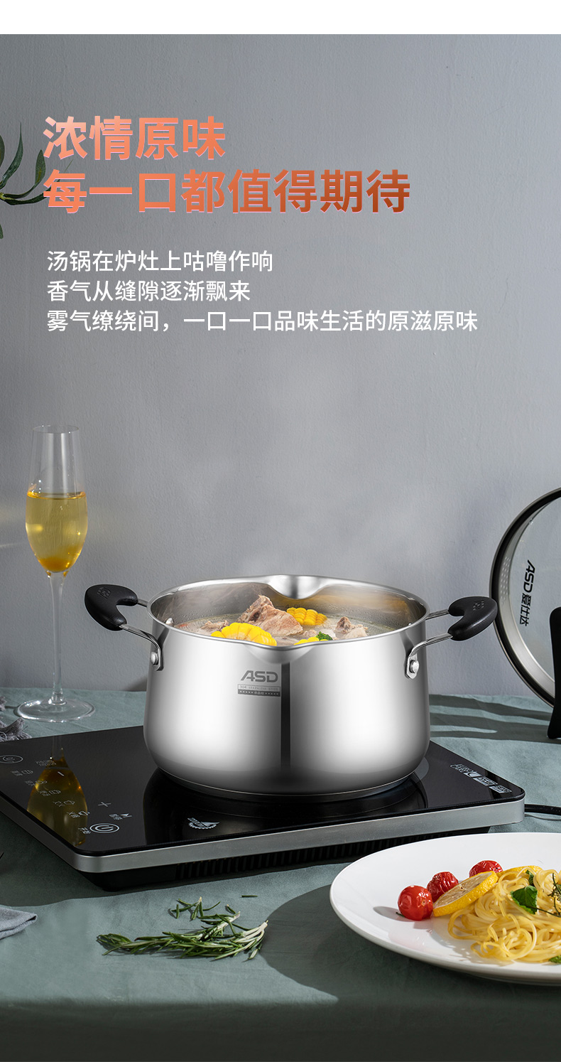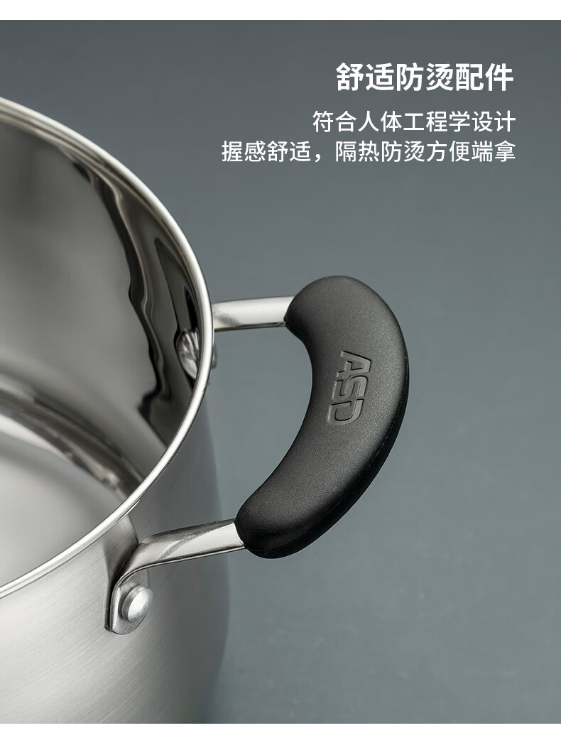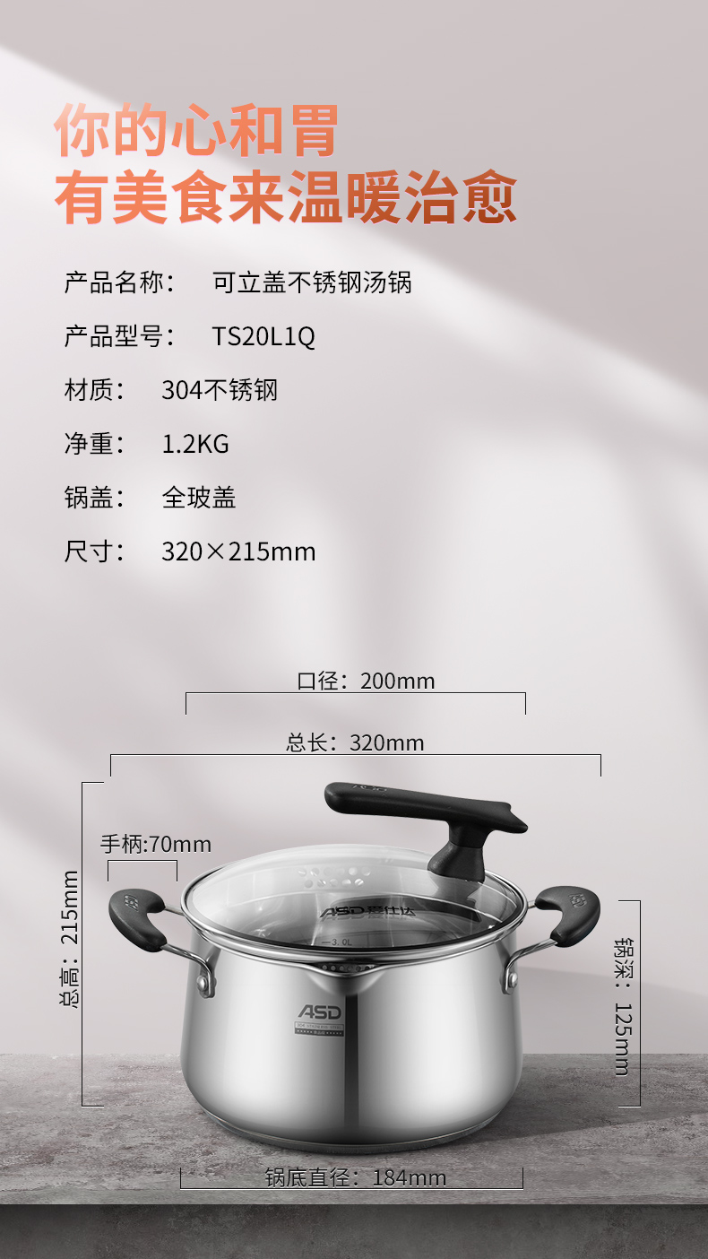 京东自营爱仕达 汤锅 304不锈钢炖锅/煲汤锅20cm 流嘴/可立盖/厚底 电磁炉燃气通用TS20L1Q