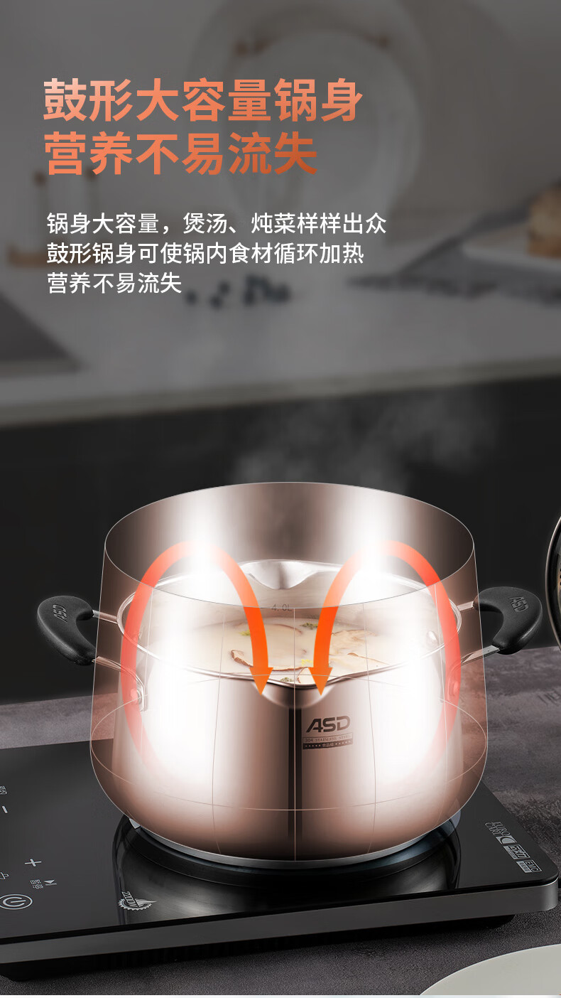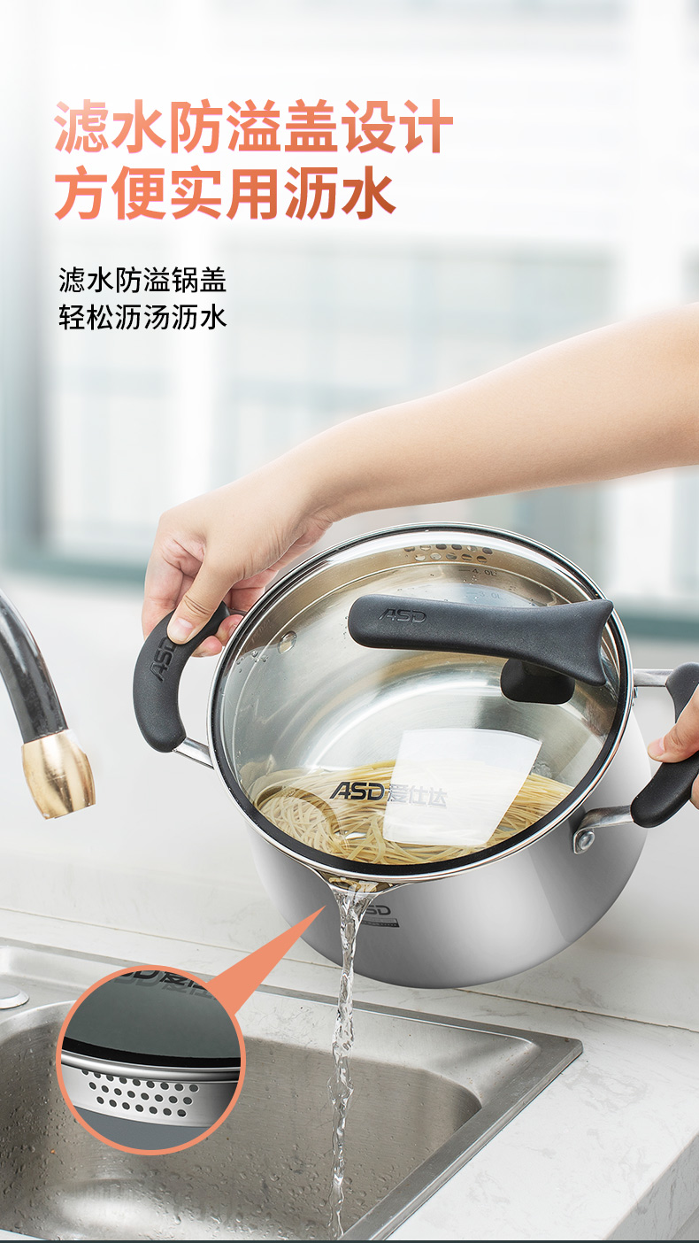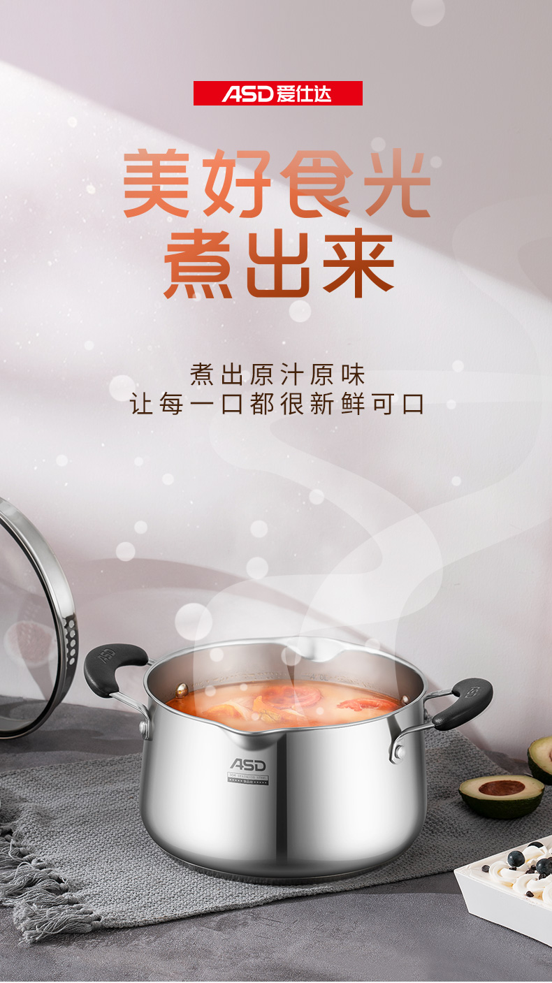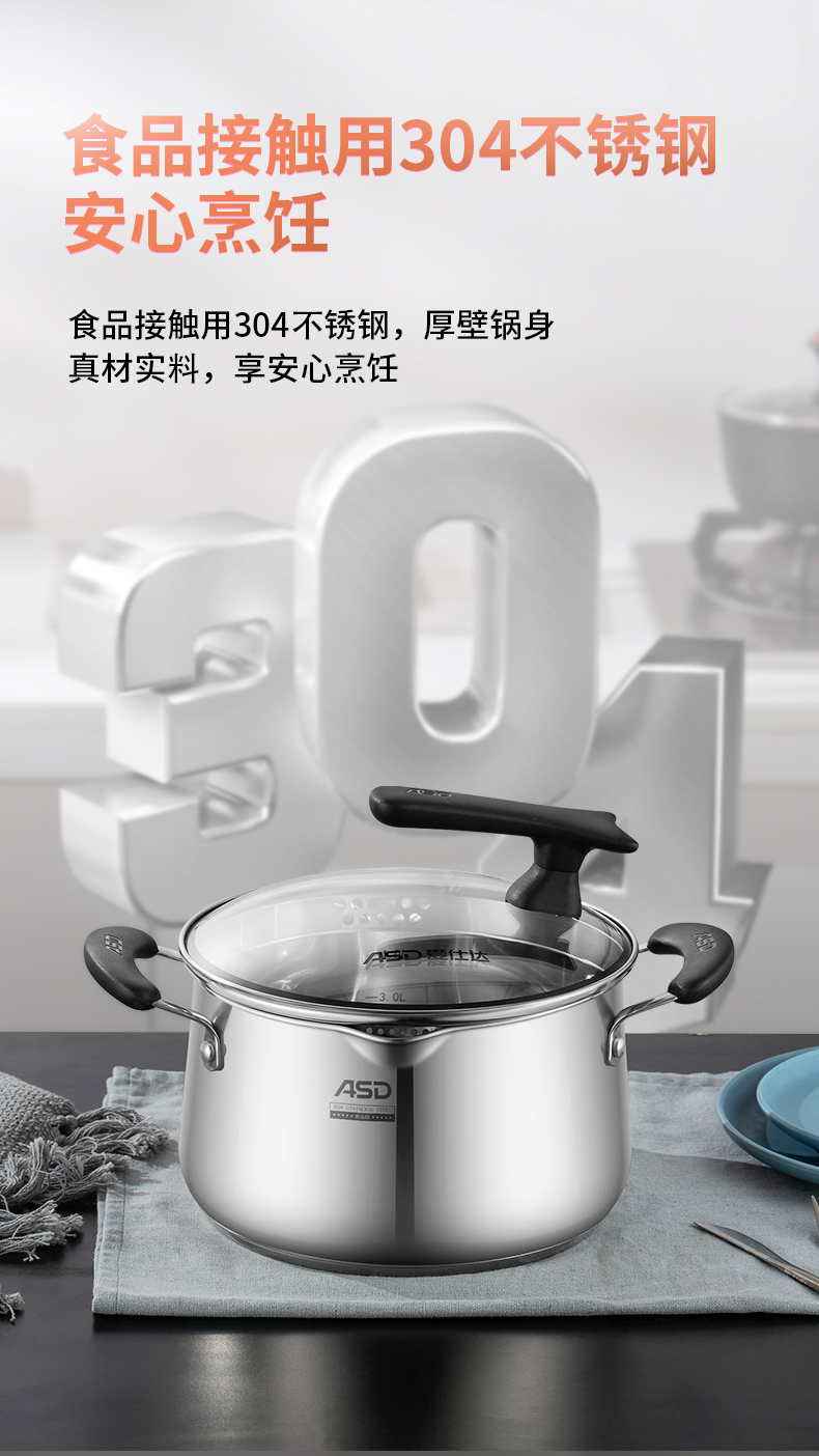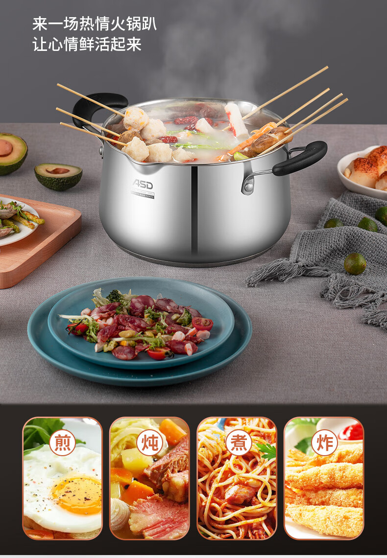 京东自营爱仕达 汤锅 304不锈钢炖锅/煲汤锅20cm 流嘴/可立盖/厚底 电磁炉燃气通用TS20L1Q