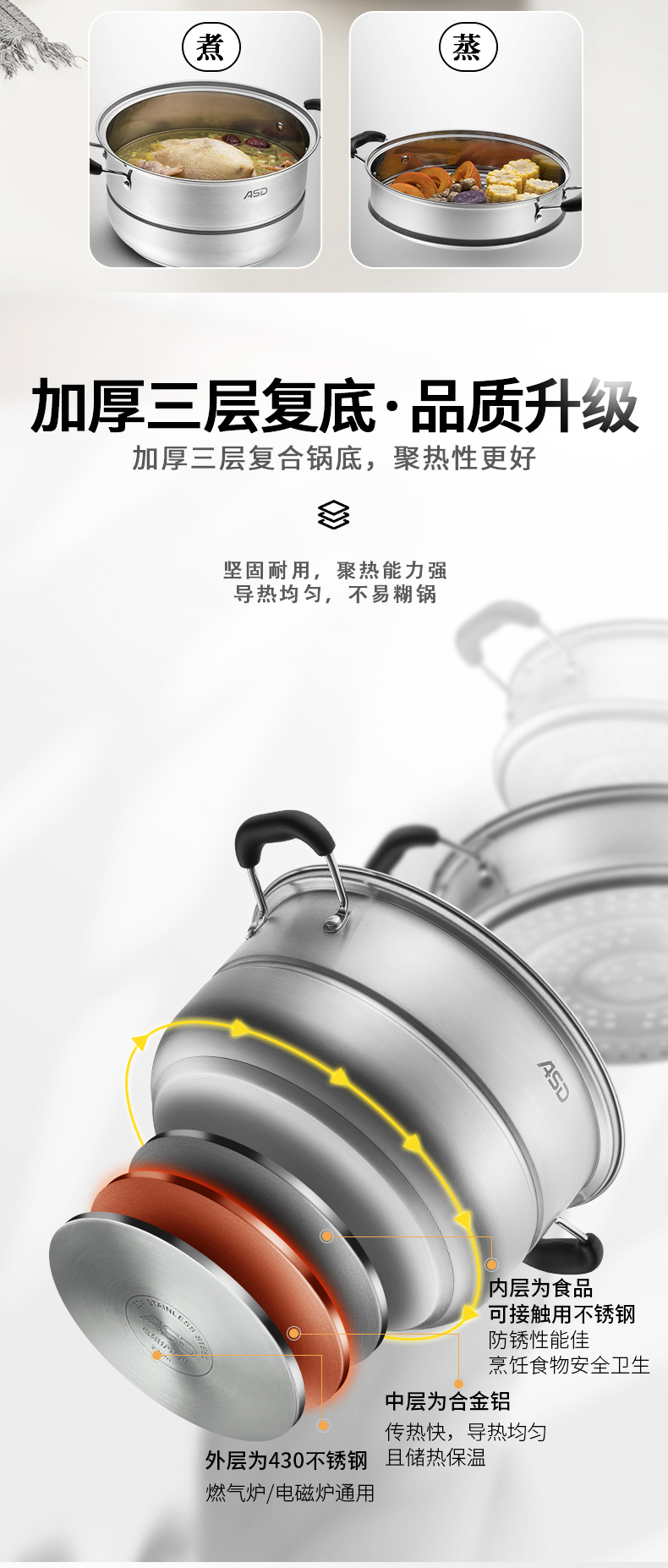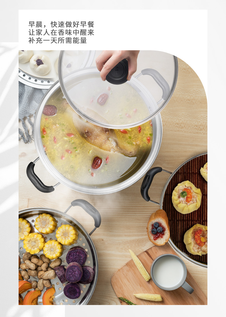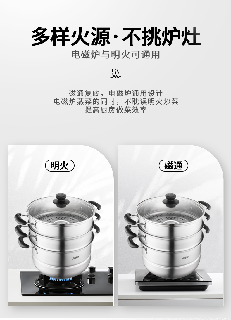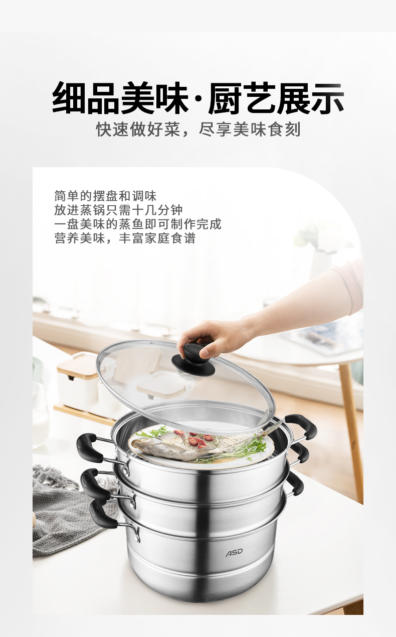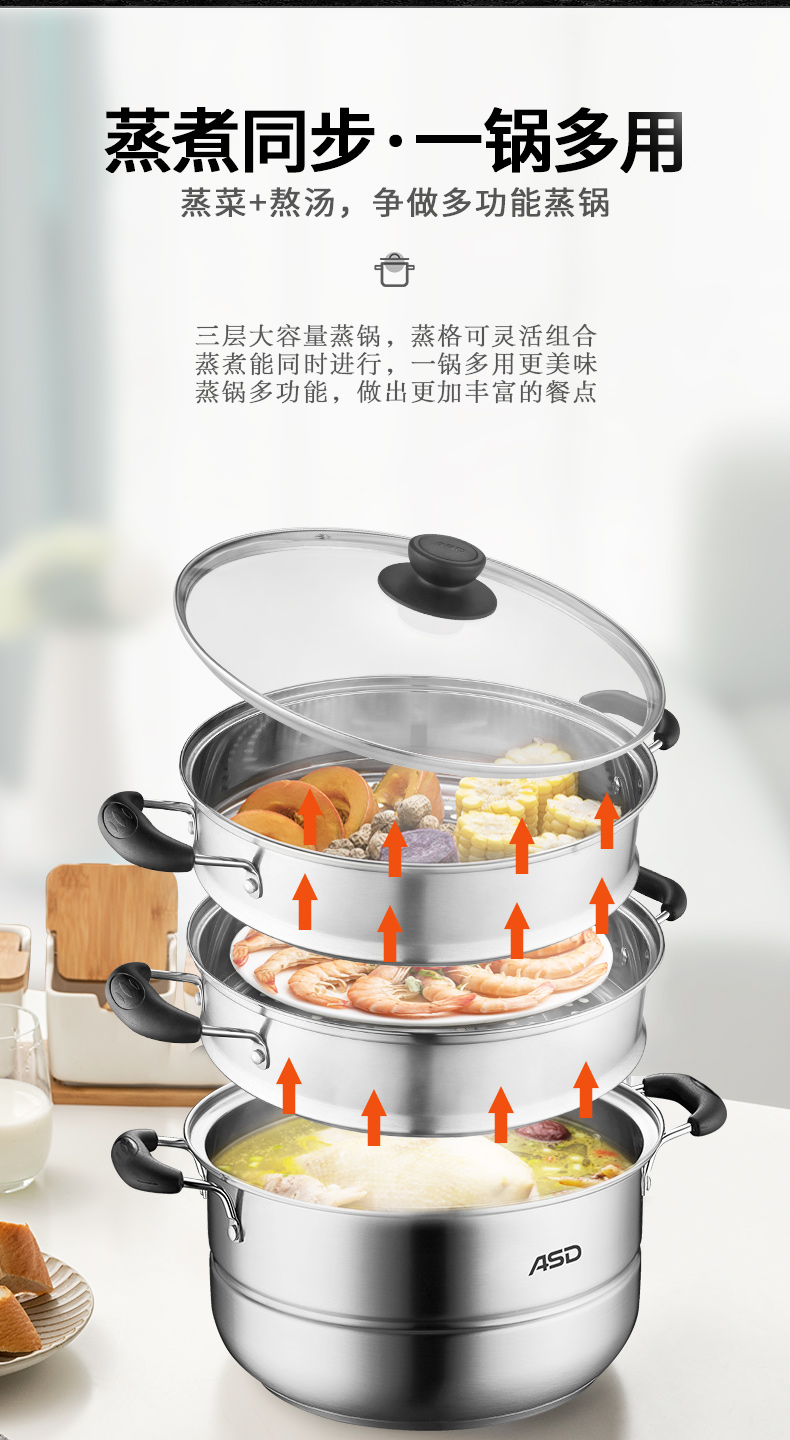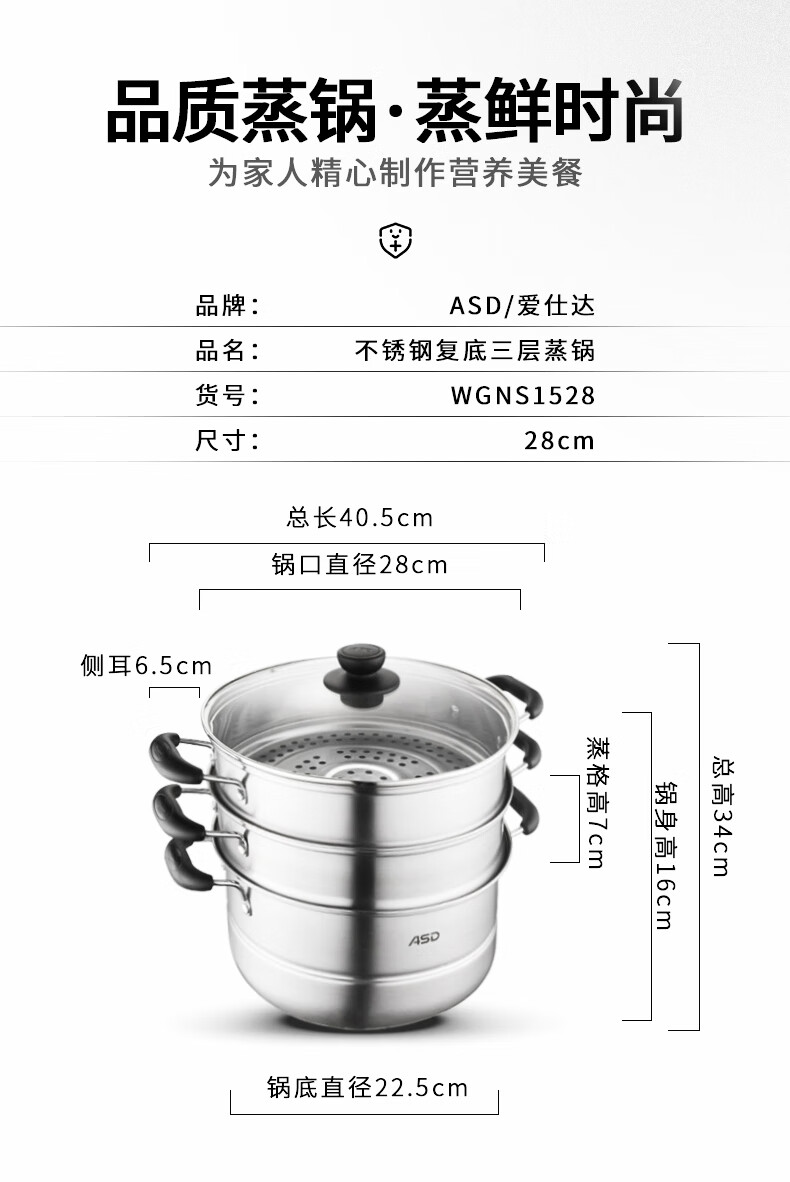 京东自营爱仕达蒸锅三层不锈钢蒸锅蒸笼28CM 电磁炉通用WGNS1528