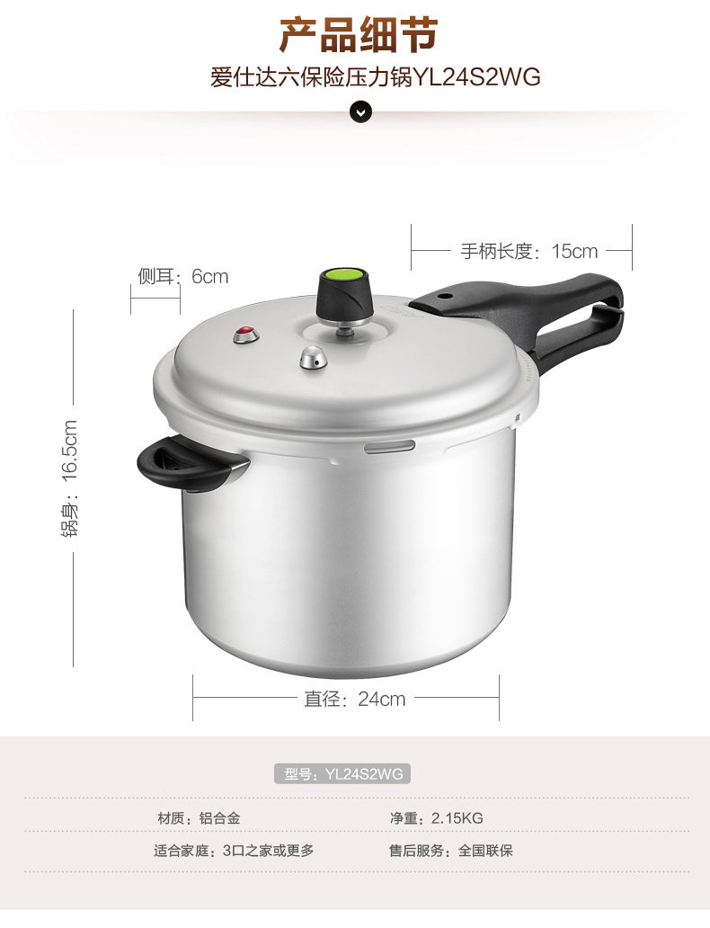 京东自营性价比款爱仕达 高压锅 燃气 24cm压力锅明火 家用大容量 六保险/铝制防滑厚底 安全防爆