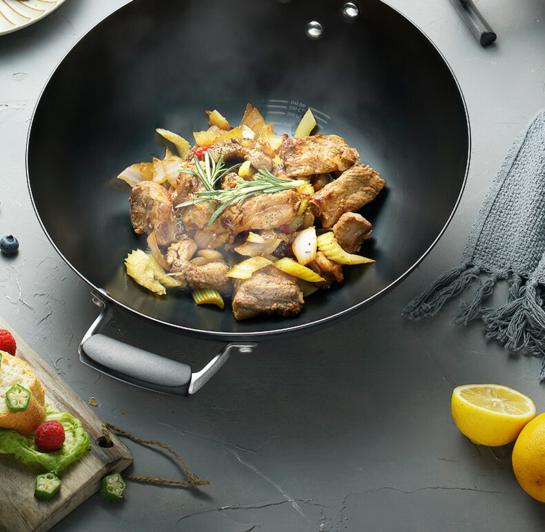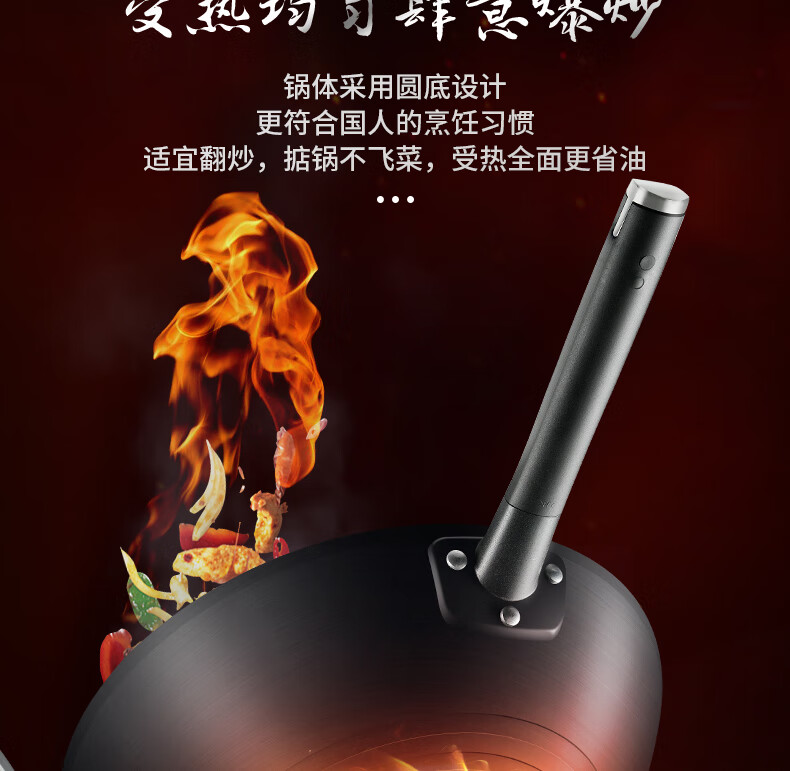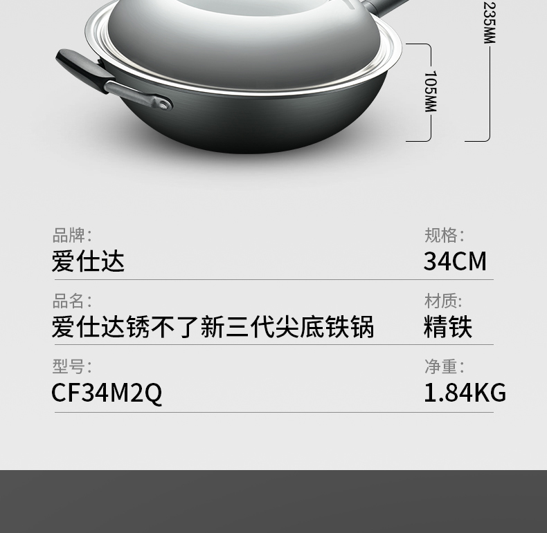 京东自营镇店好货爱仕达 炒锅 铁锅/无涂层 34cm精铁圆底炒菜锅新三代锈不了燃气翻炒煎锅CF34M2Q