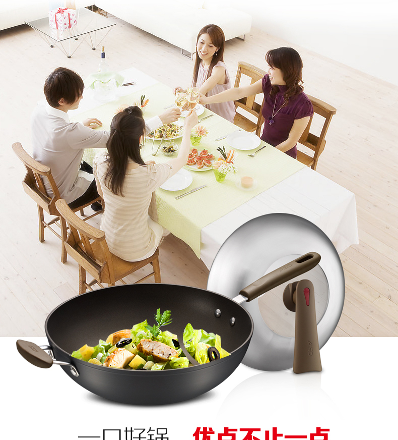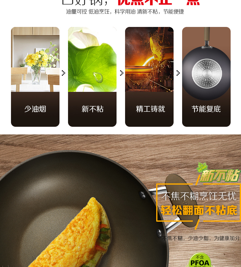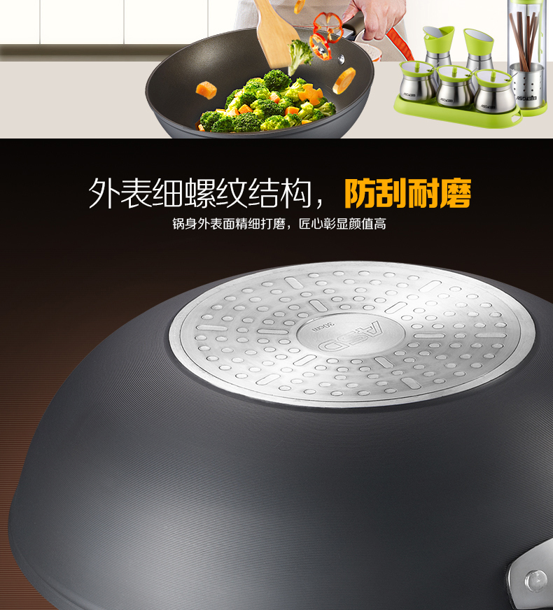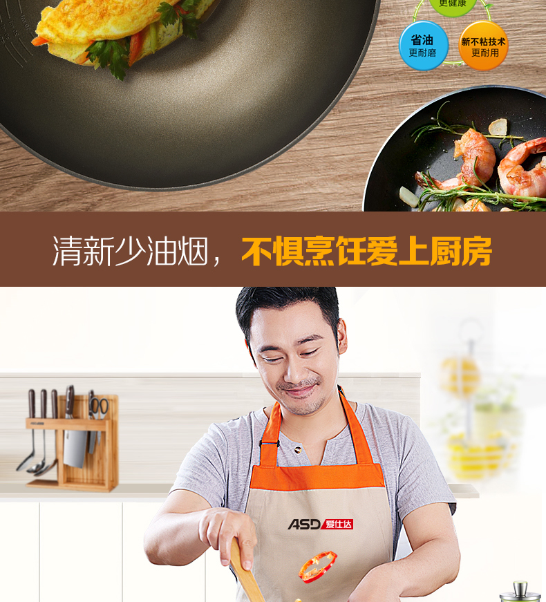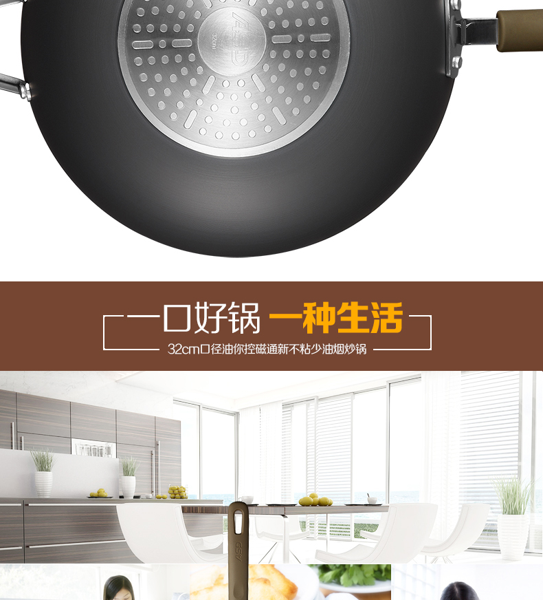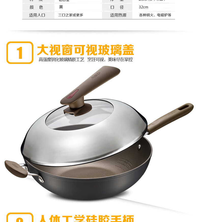 京东自营商超同款爱仕达 炒锅 不粘锅32cm 无油烟炒菜锅/家用不沾炒煎锅HW8332E 电磁炉明火通用