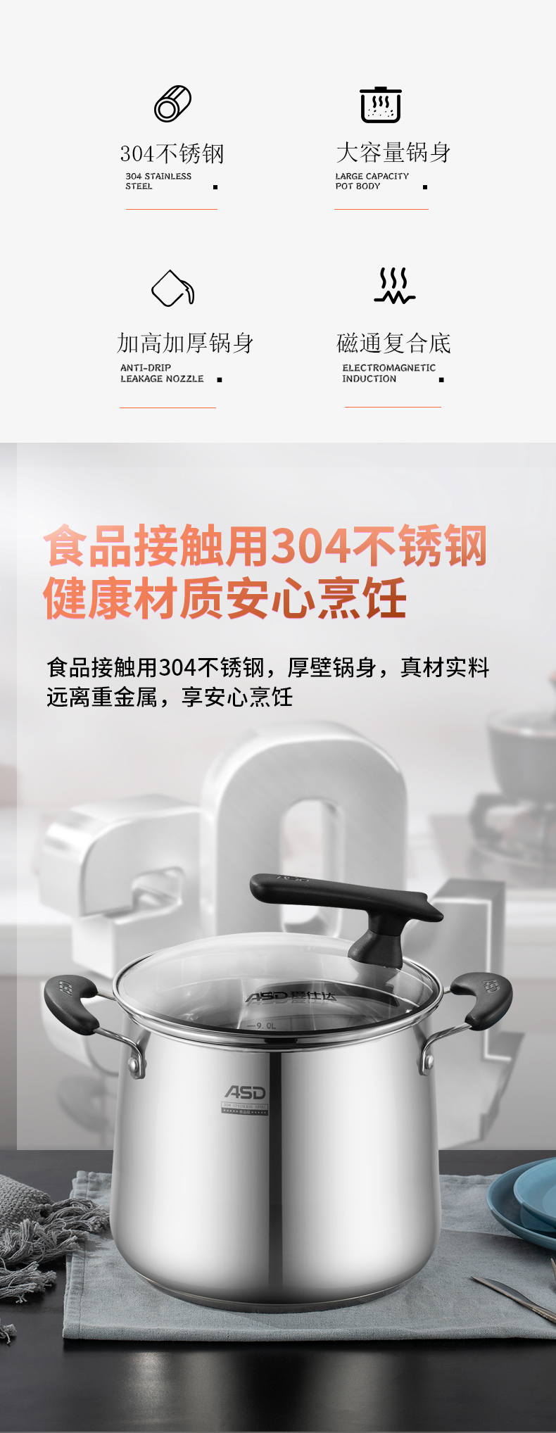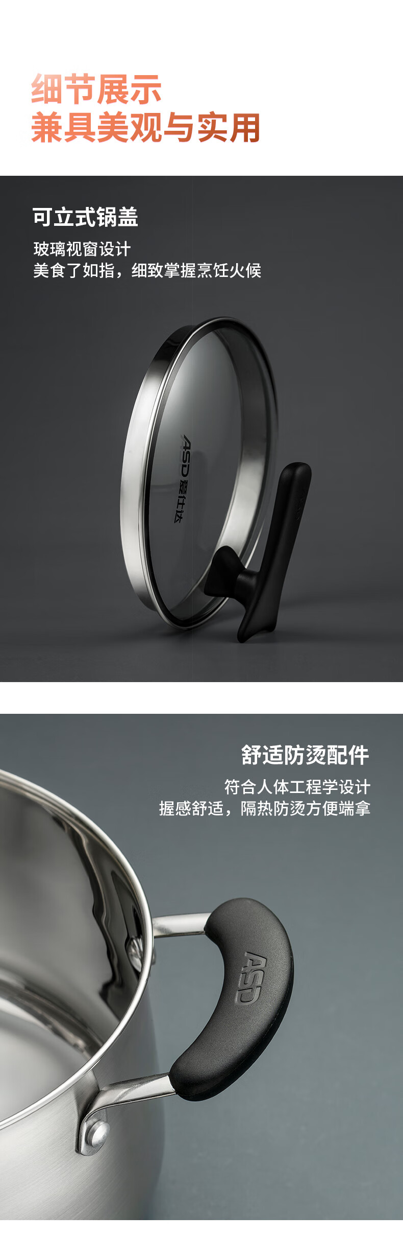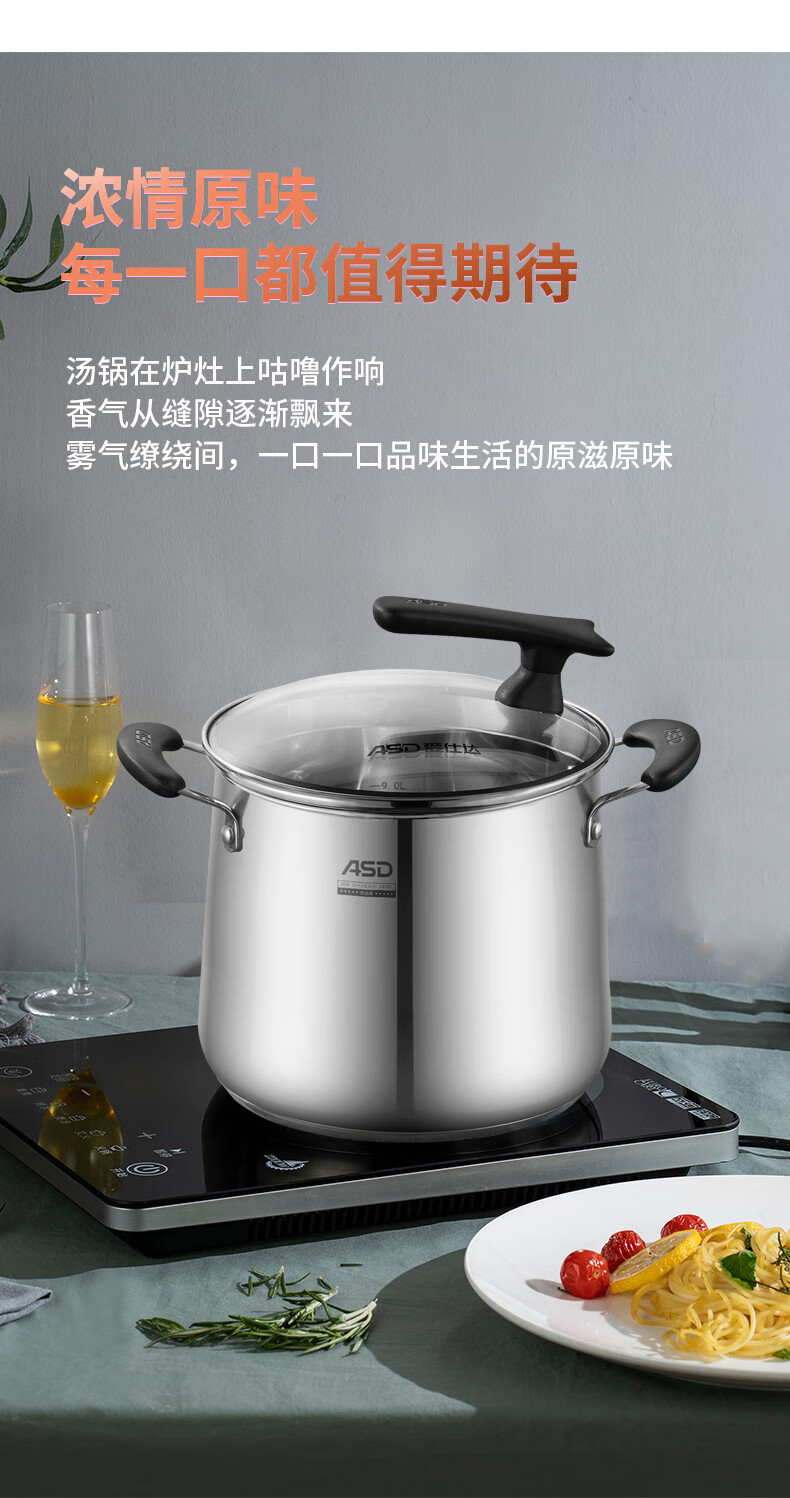 京东自营商超同款爱仕达 汤锅 304不锈钢高深炖锅/煲汤锅24cm 大容量可立盖厚底电磁炉燃气通用
