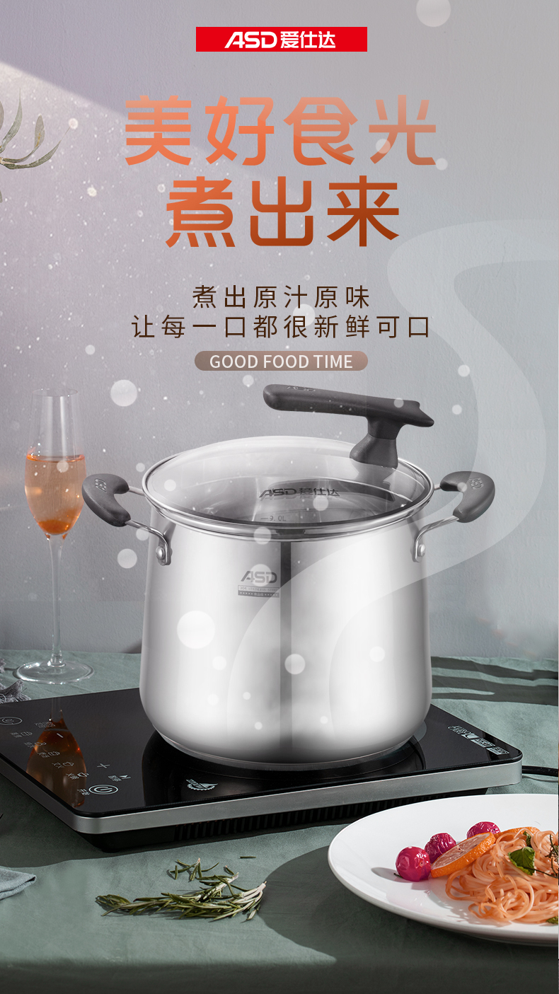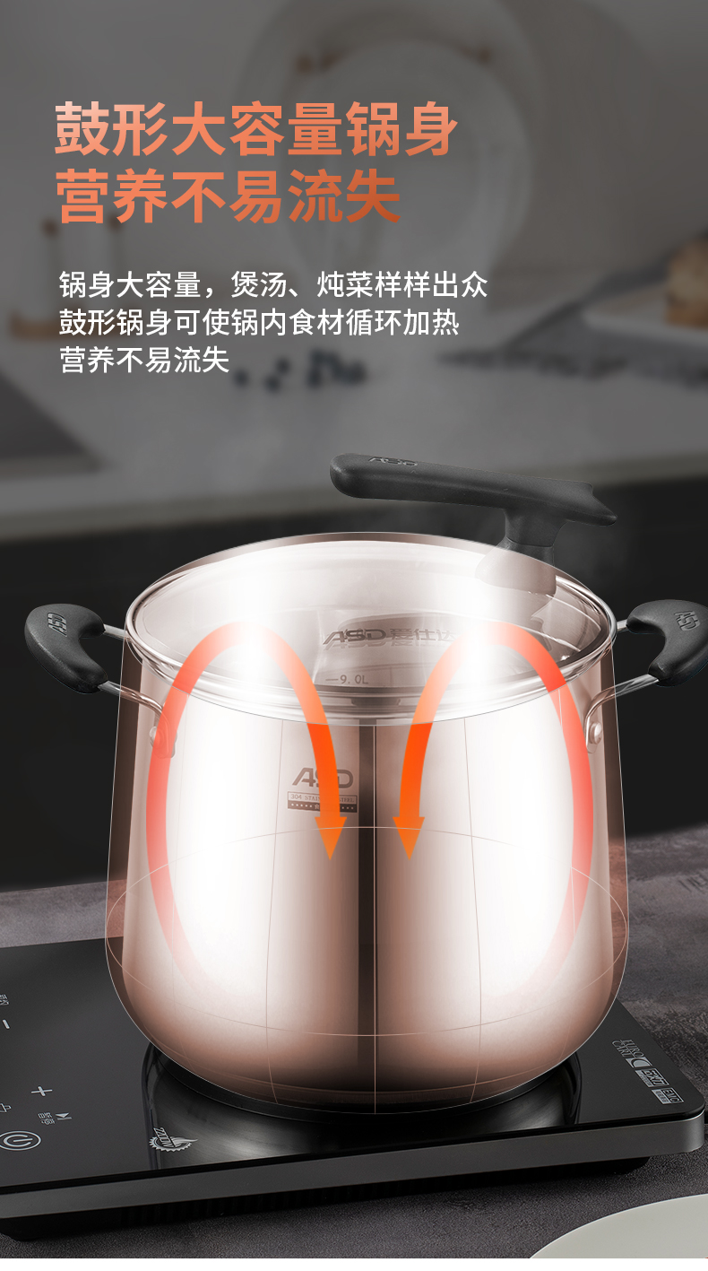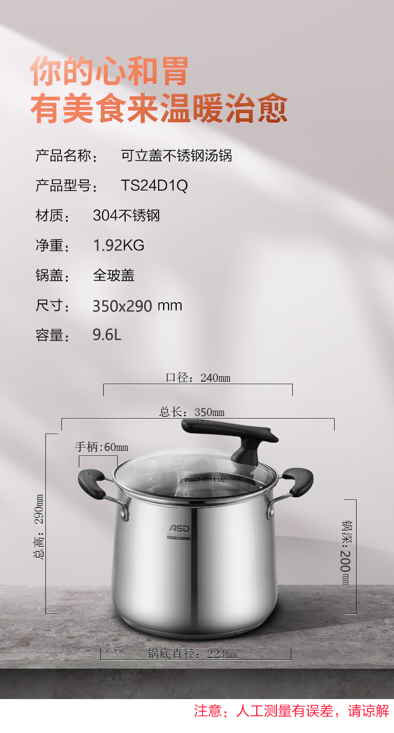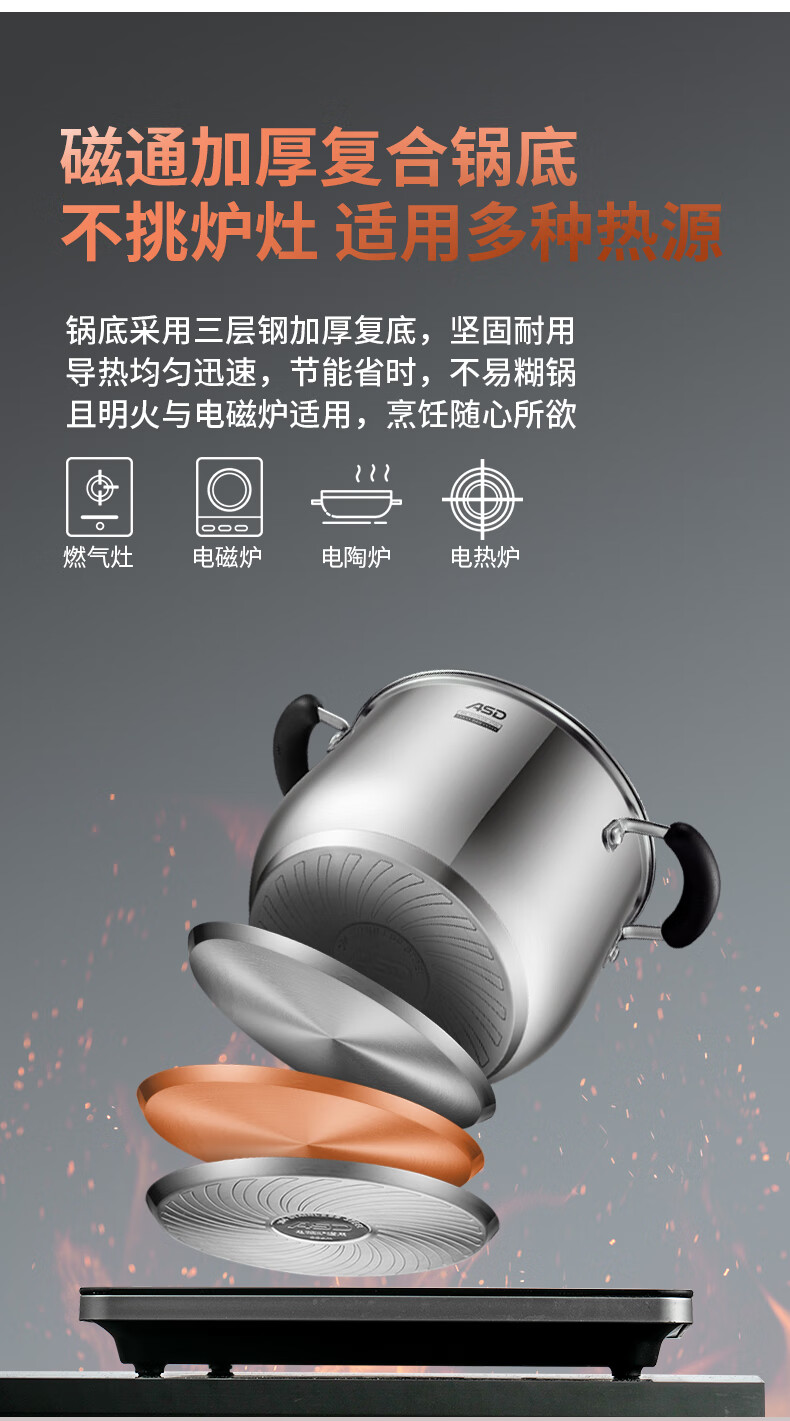 京东自营商超同款爱仕达 汤锅 304不锈钢高深炖锅/煲汤锅24cm 大容量可立盖厚底电磁炉燃气通用