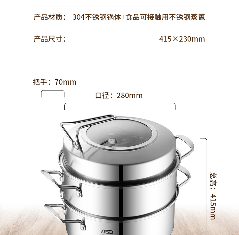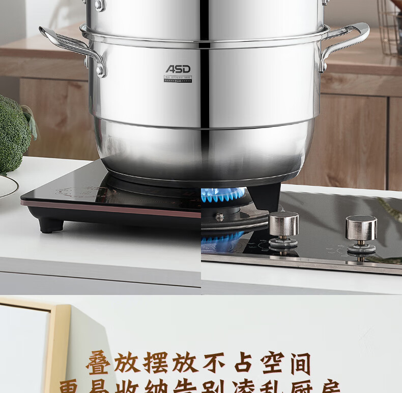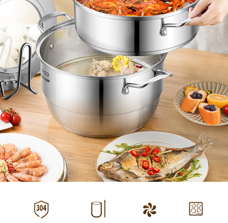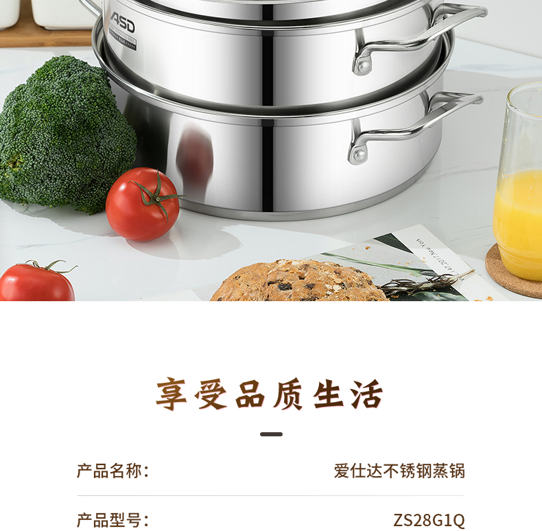 京东自营热卖推荐爱仕达 蒸锅 三层28cm 304不锈钢家用厚底 带蒸笼/蒸屉 明火电磁炉通用