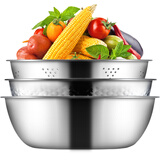 京东自营美厨(maxcook)不锈钢盆三件套 洗菜篮和面盆调料盆米筛味斗和面淘米洗菜 MCM-3