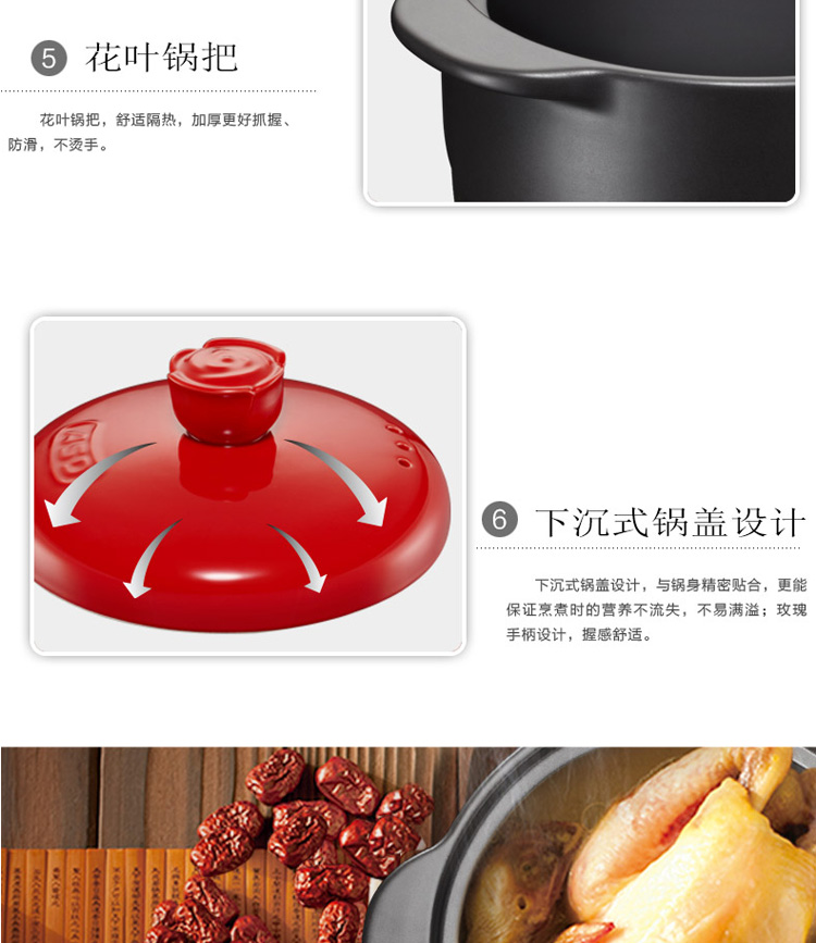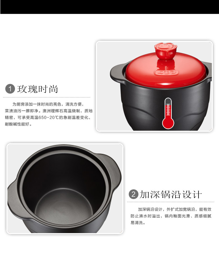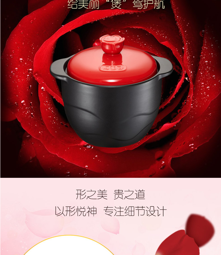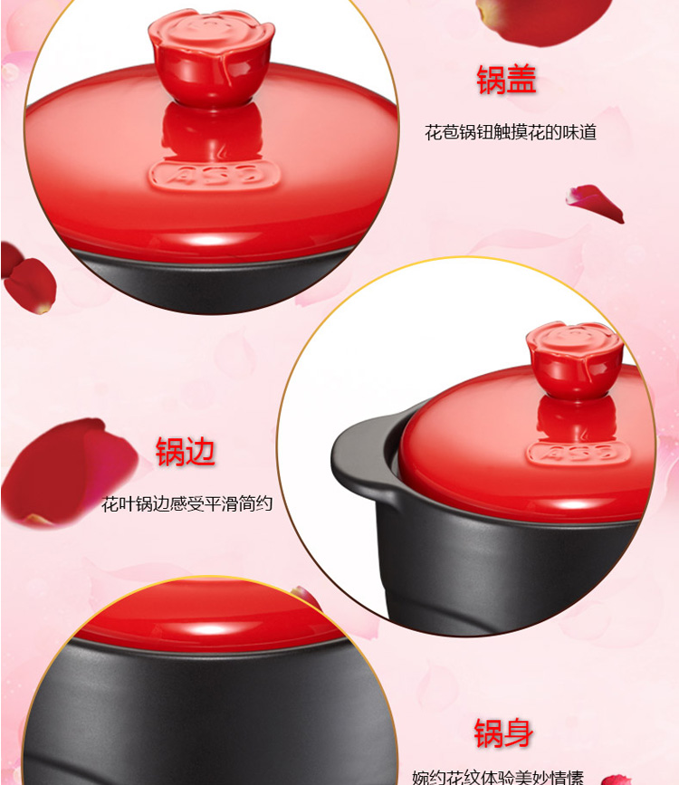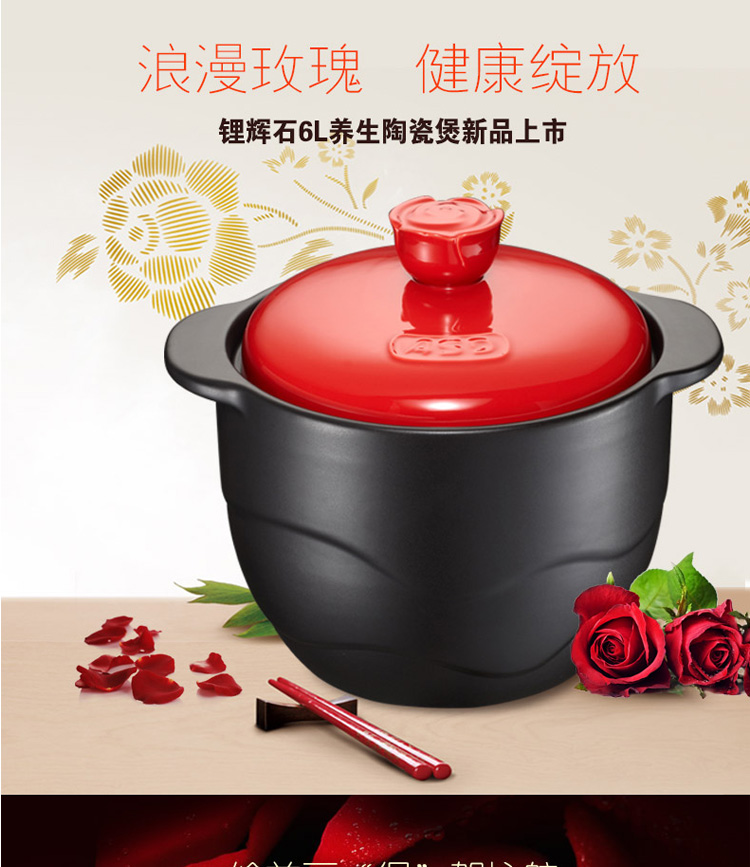 京东自营爱仕达(ASD)陶瓷砂锅养生煲炖锅汤锅煎药锅中药锅6.0L玫瑰花煲盖燃气明火专用