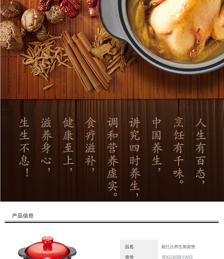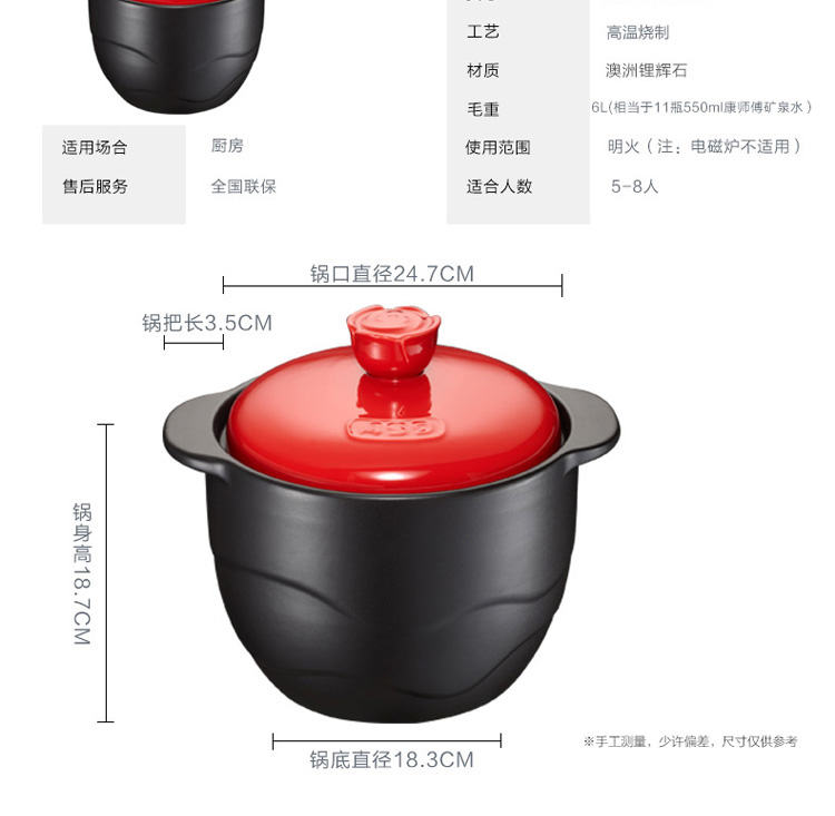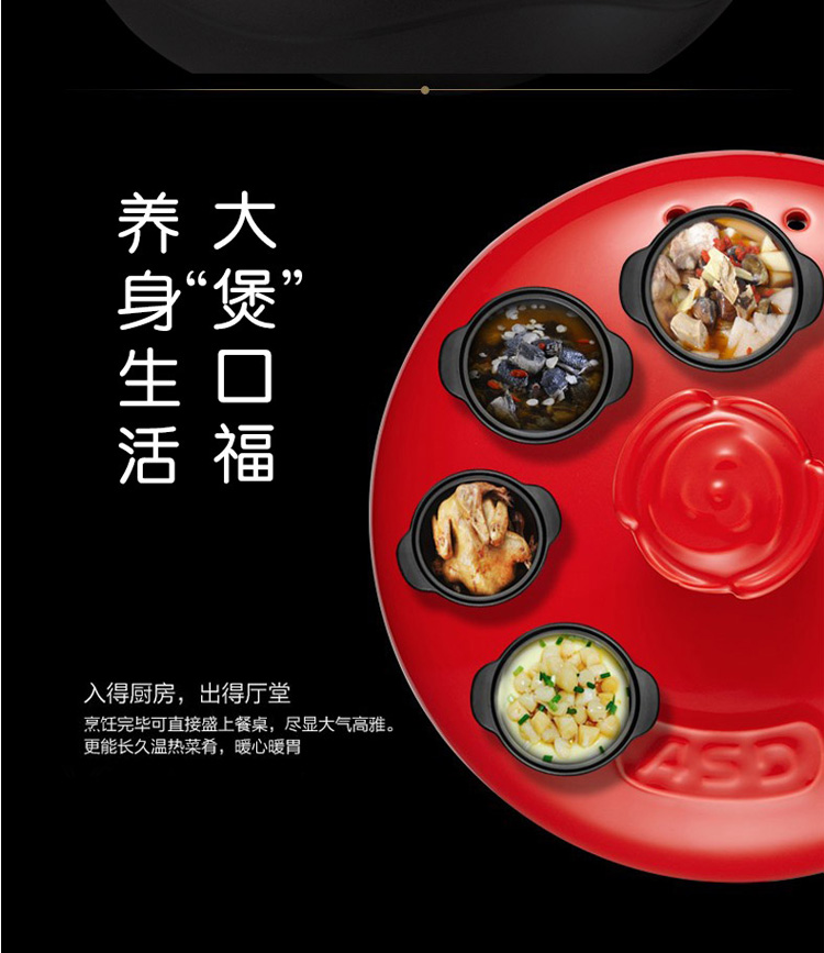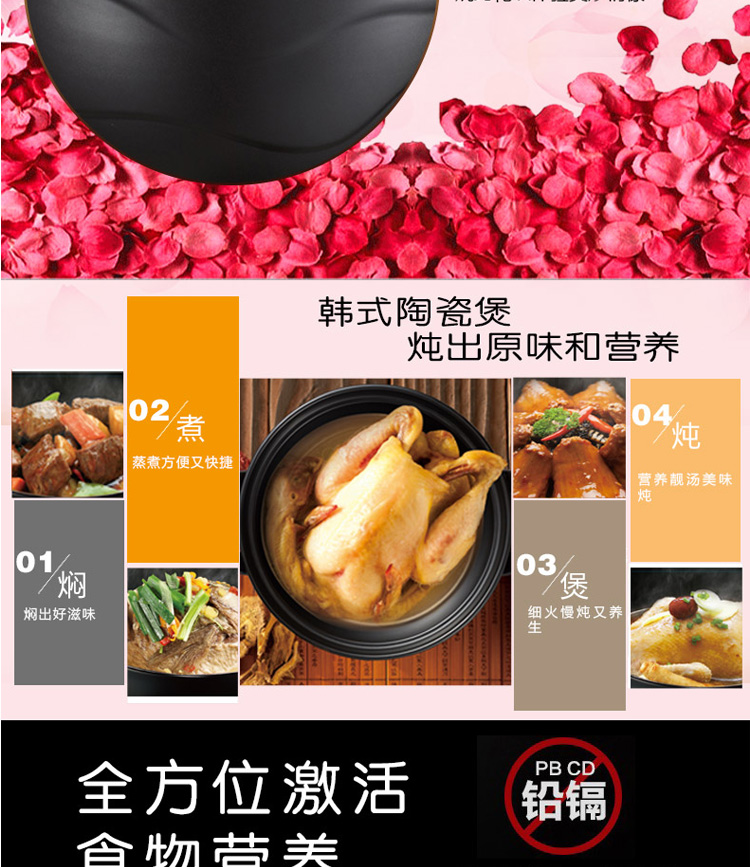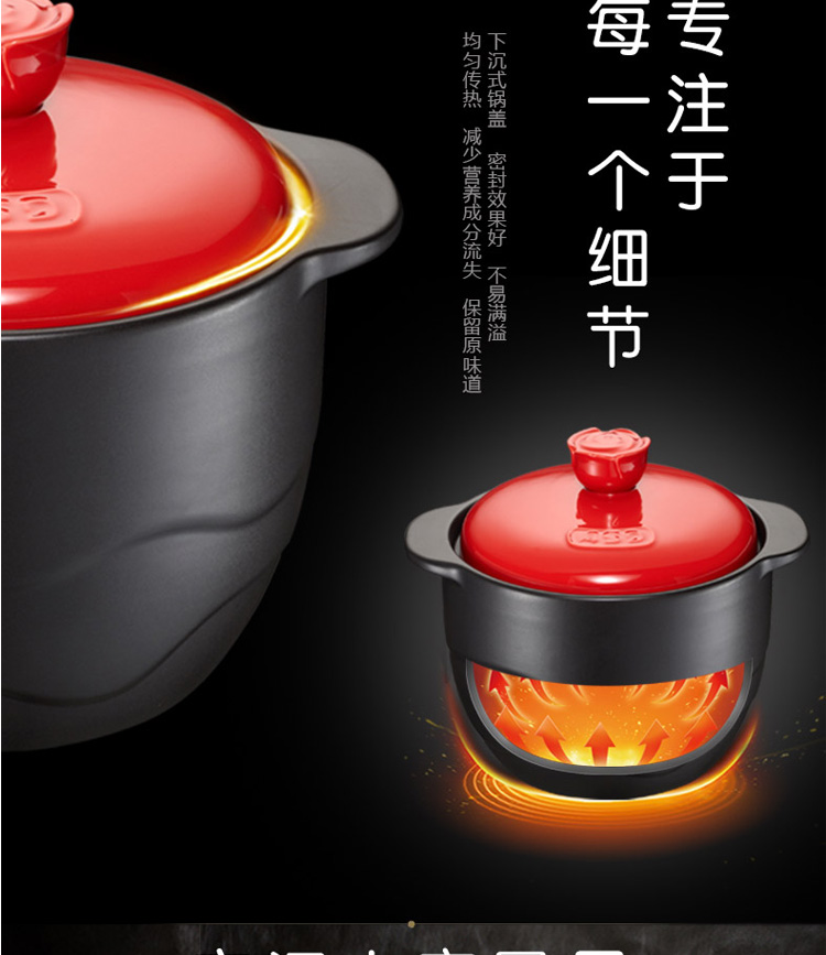 京东自营爱仕达(ASD)陶瓷砂锅养生煲炖锅汤锅煎药锅中药锅6.0L玫瑰花煲盖燃气明火专用