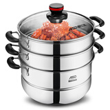 京东自营爱仕达 蒸锅304不锈钢三层26CM蒸笼大容量带蒸笼蒸屉电磁炉燃气通用WG1526SL