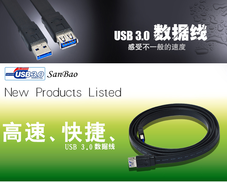 京东自营三堡(SANBAO) SU-A10 usb3.0 AM/AF 高速USB3.0延长线移动硬盘USB3.0数据线 1m 黑色