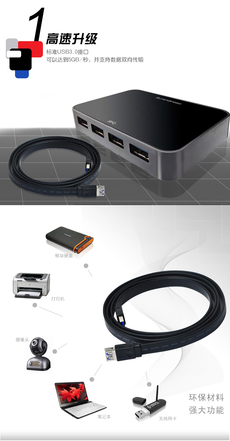 京东自营三堡(SANBAO) SU-A01 usb3.0 AM/AF镀金版白色 高速USB3.0延长线移动硬盘USB3.0数据线 1m