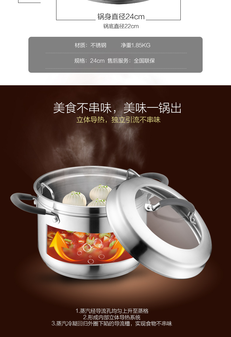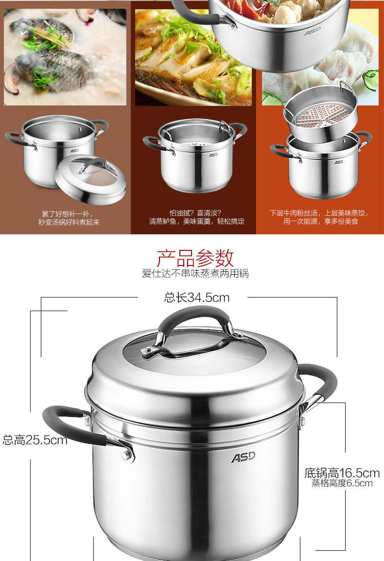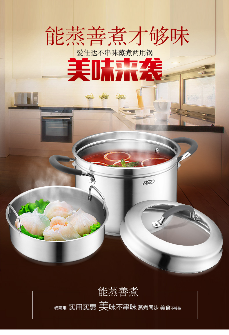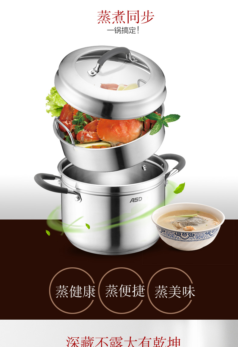 京东自营爱仕达蒸锅 一层24cm 304不锈钢蒸煮两用捞面条锅WG1524N 通用厚底带蒸笼