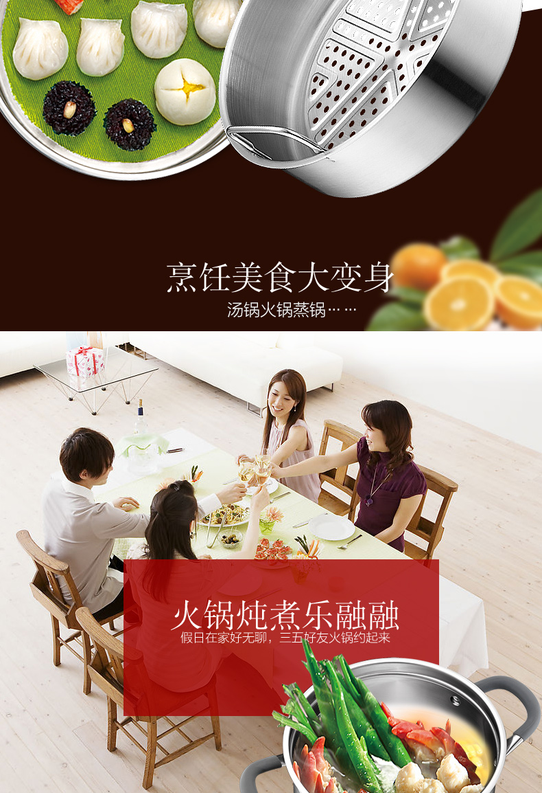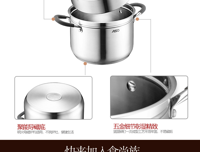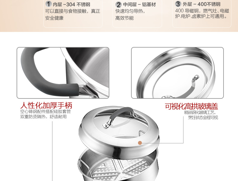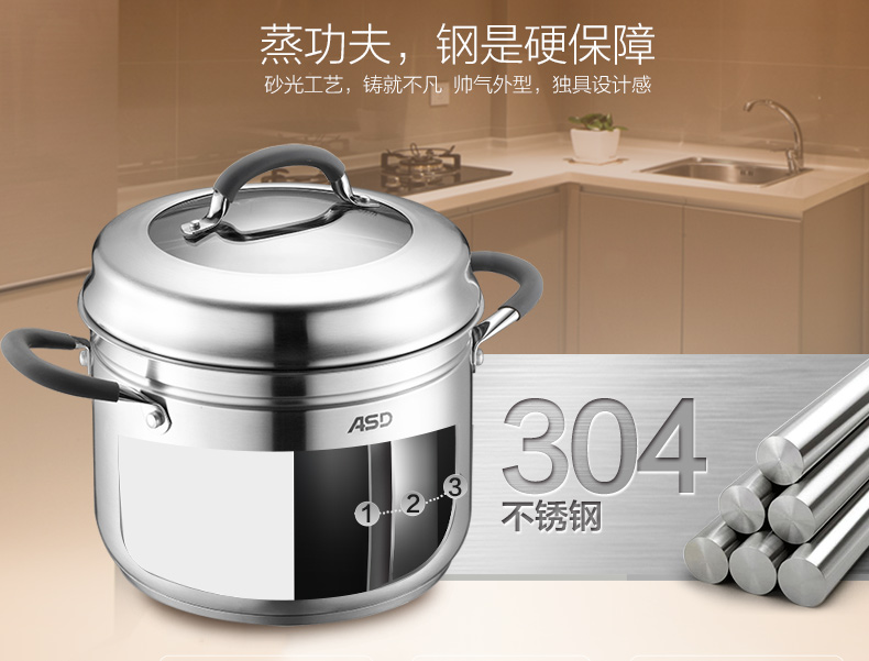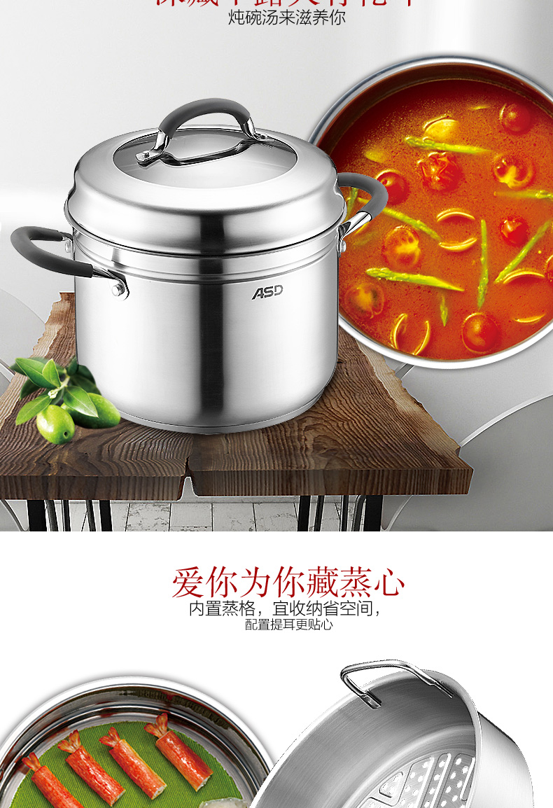 京东自营爱仕达蒸锅 一层24cm 304不锈钢蒸煮两用捞面条锅WG1524N 通用厚底带蒸笼