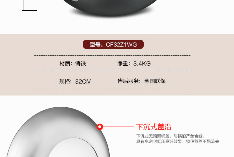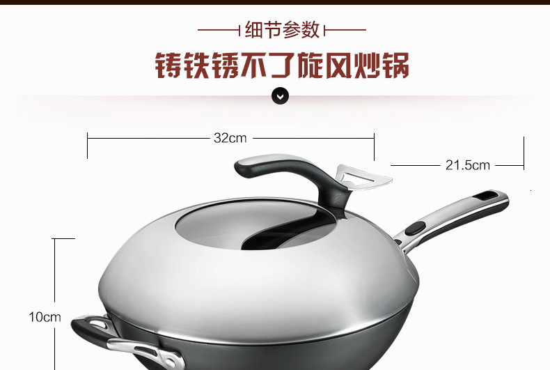 京东自营尖货推荐爱仕达 炒锅 铁锅/无涂层 32cm锈不了炒菜锅可立盖铸铁炒煎锅 电磁炉明火通用