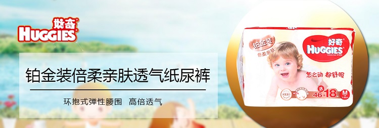 京东自营好奇(HUGGIES)铂金装透气纸尿裤 M(6-11kg)64片 尿不湿