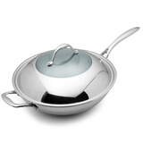 京东自营铂帝斯Bodeux炒锅32cm无涂层不易粘锅304不锈钢炒菜锅电磁炉燃气通用