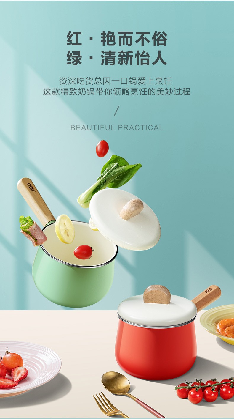 京东自营爱仕达 奶锅 宝宝婴儿辅食锅14cm 珐琅铸铁早餐锅/煮奶/热奶汤锅 燃气明火专用NF14A1WG (红色R)