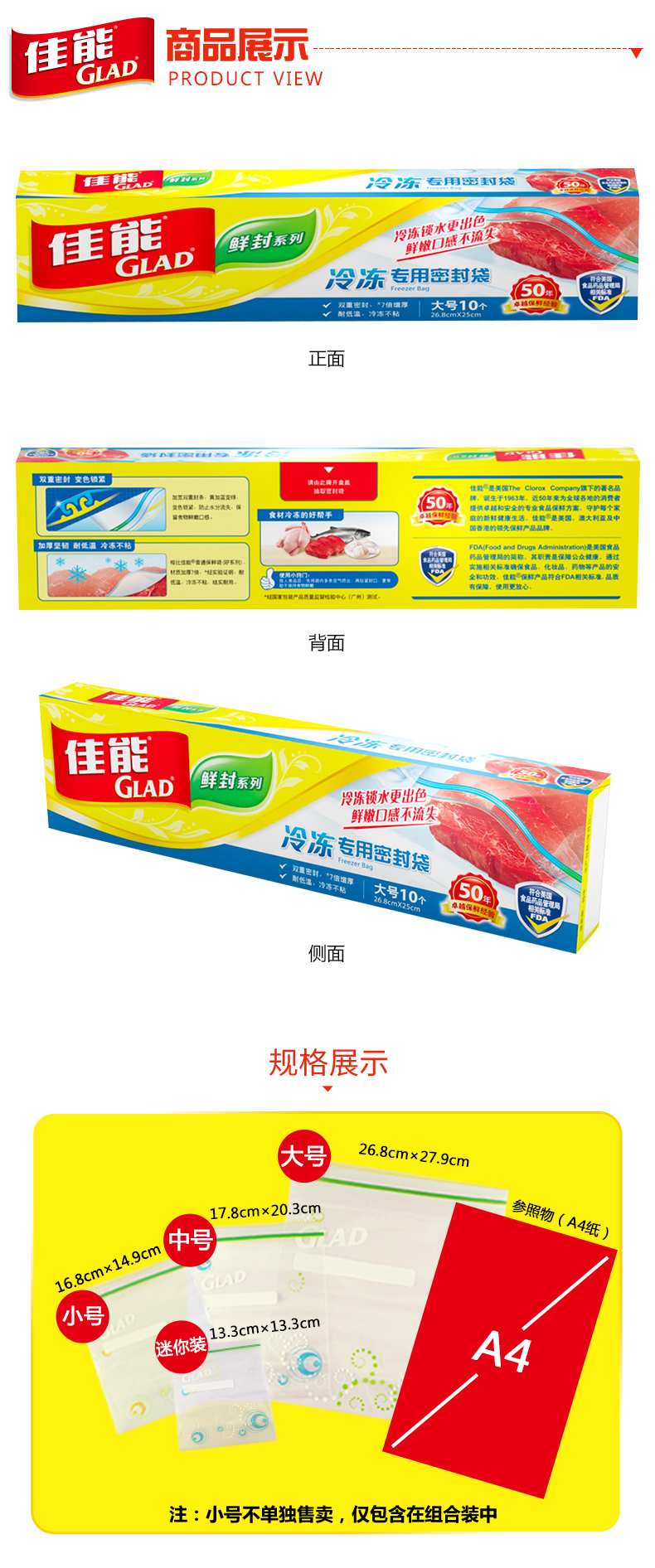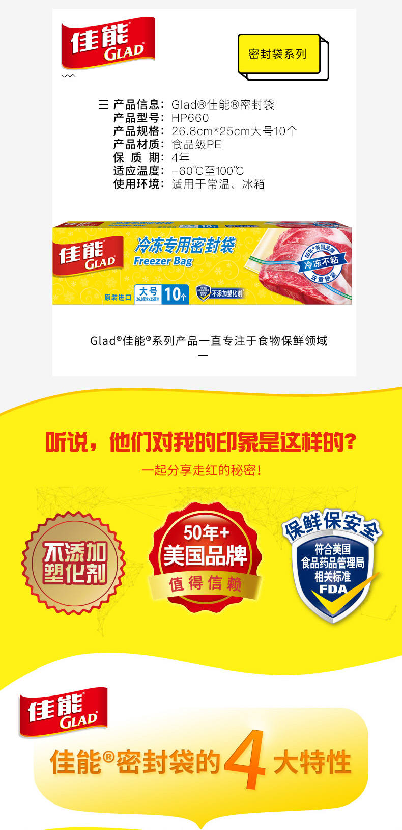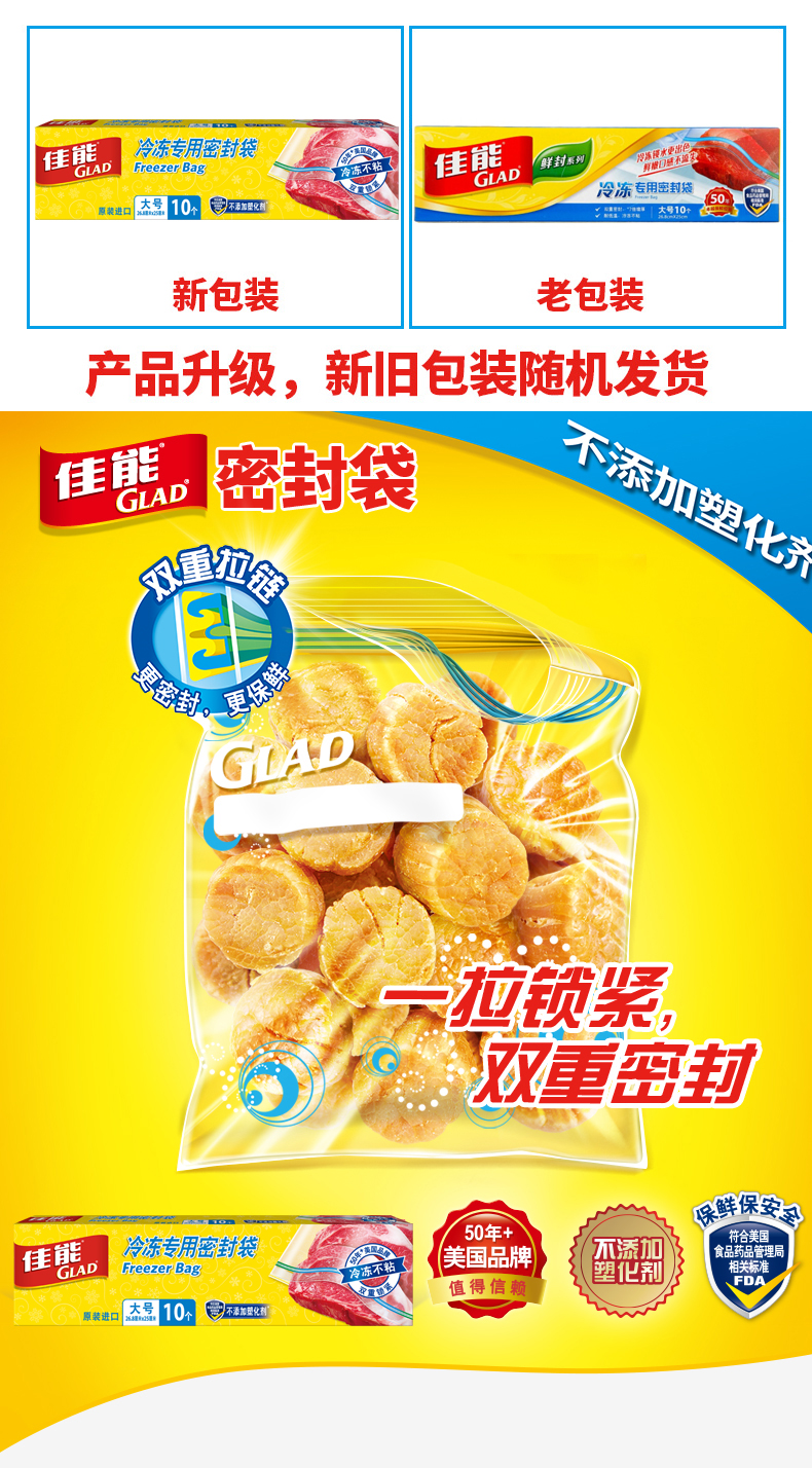 京东自营佳能(Glad)冷冻专用大号密封袋HP660(26.8cm*25cm*10个)原装进口厚实密实袋 双重锁紧密实防漏