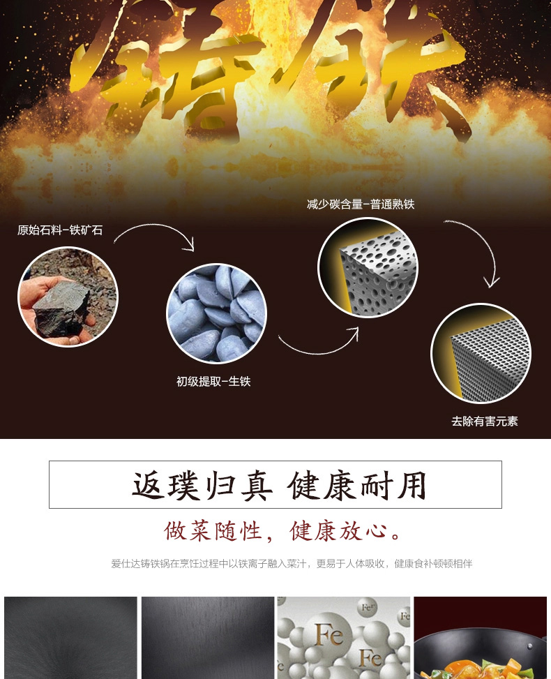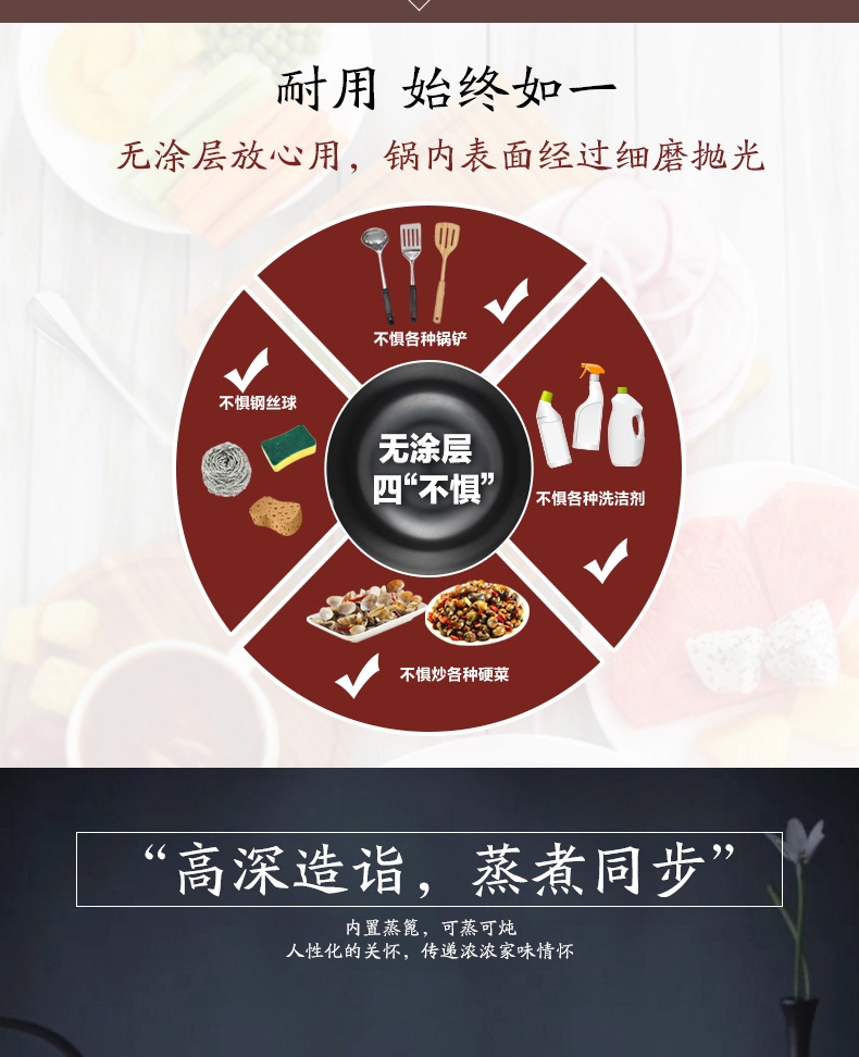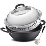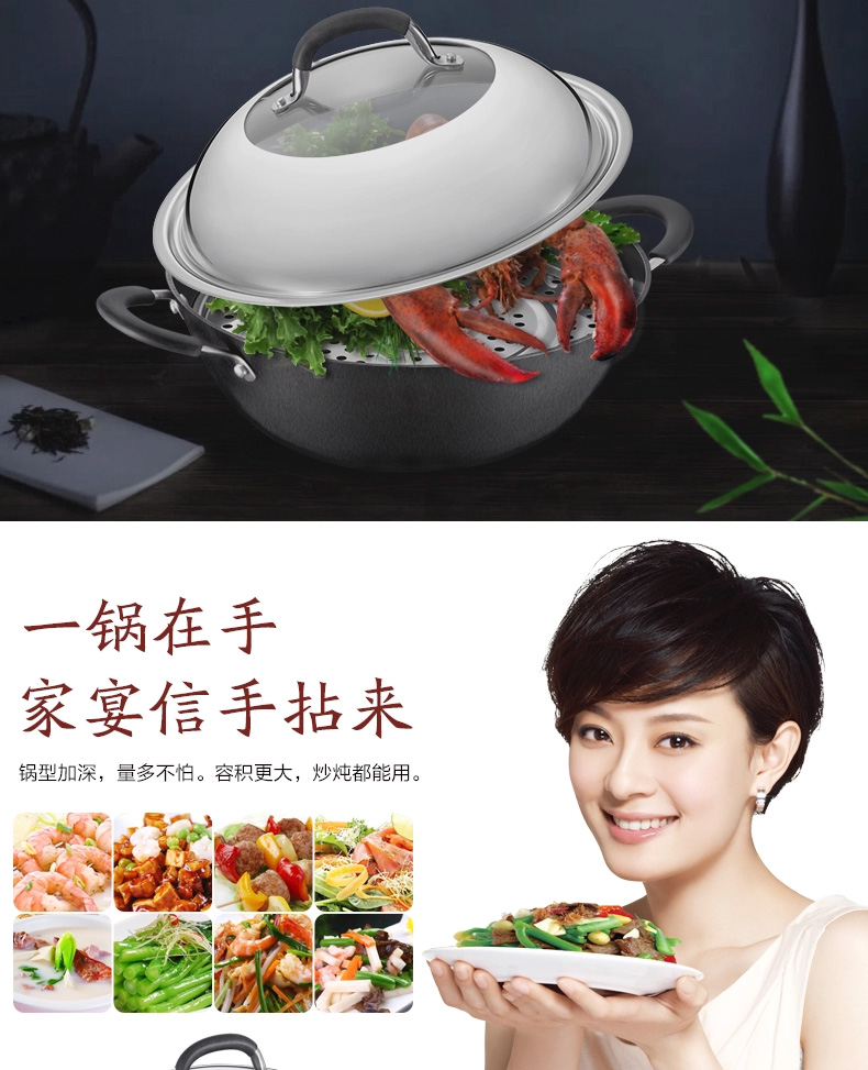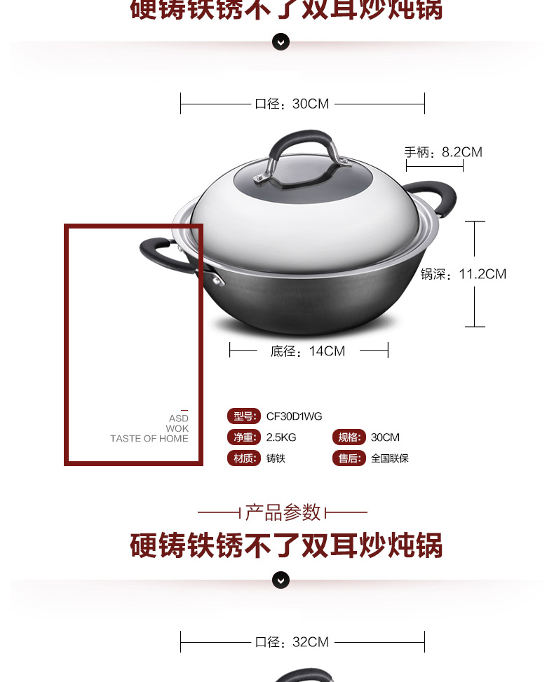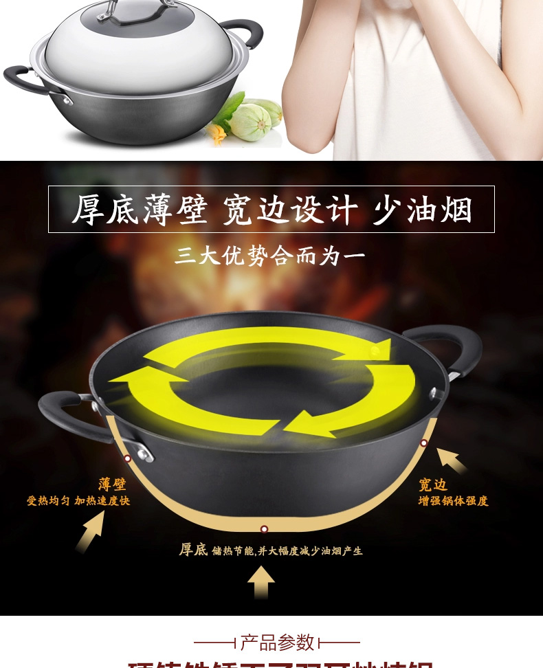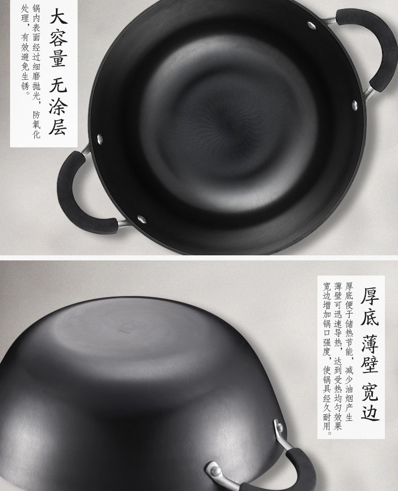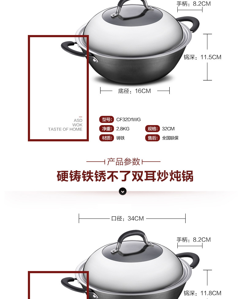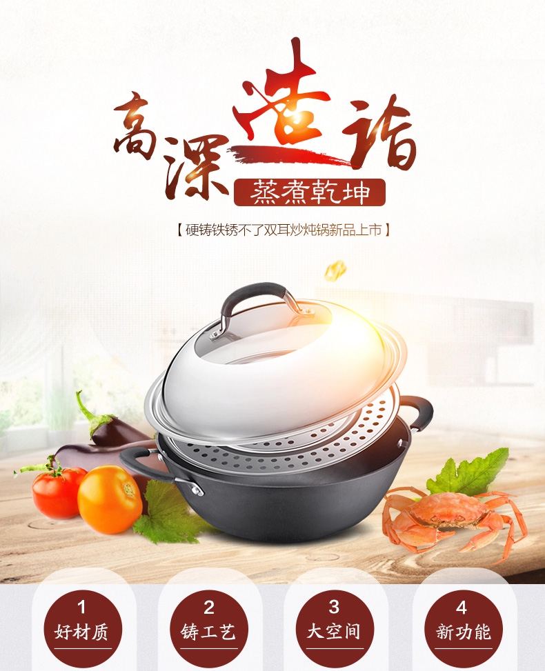 京东自营爱仕达(ASD)炒锅硬铸铁锈不了双耳炖铁锅蒸锅无涂层带蒸篦 电磁炉燃气通用 CF34D1WG 34cm