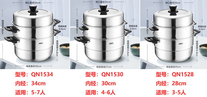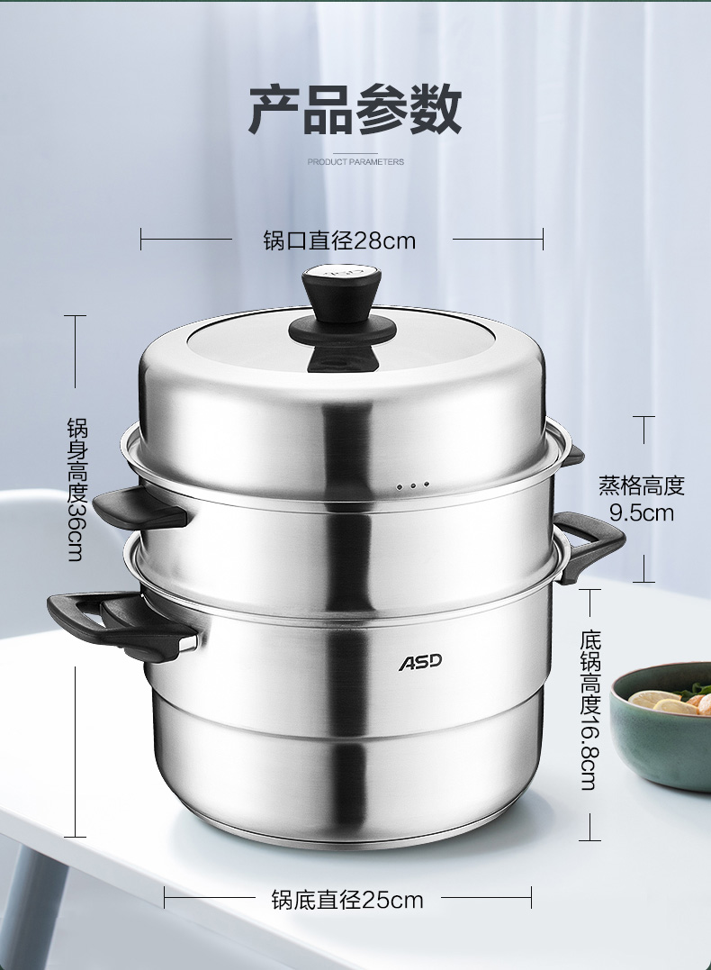 京东自营商超款爱仕达 蒸锅 三层28cm 304不锈钢家用厚底 带蒸笼/蒸屉 明火电磁炉通用QN1528