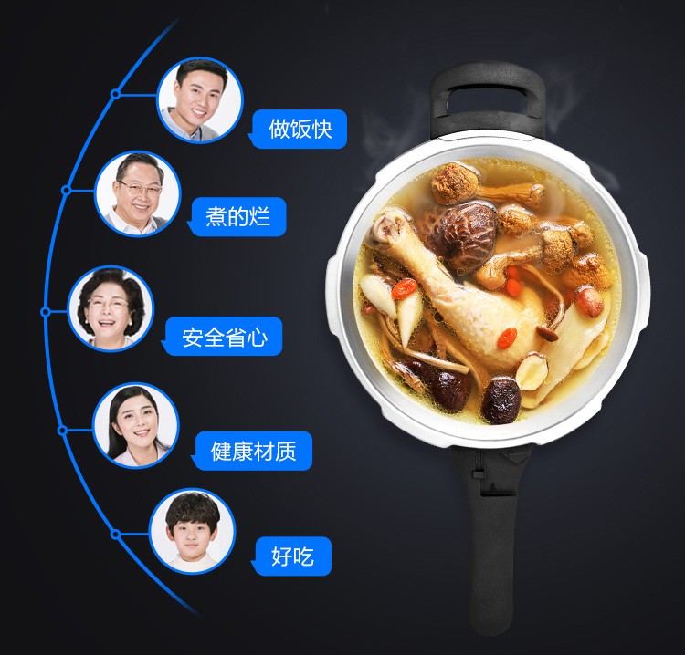京东自营尖货推荐爱仕达 高压锅燃气 20cm电磁炉压力锅 304不锈钢/六保险厚底 安全防爆