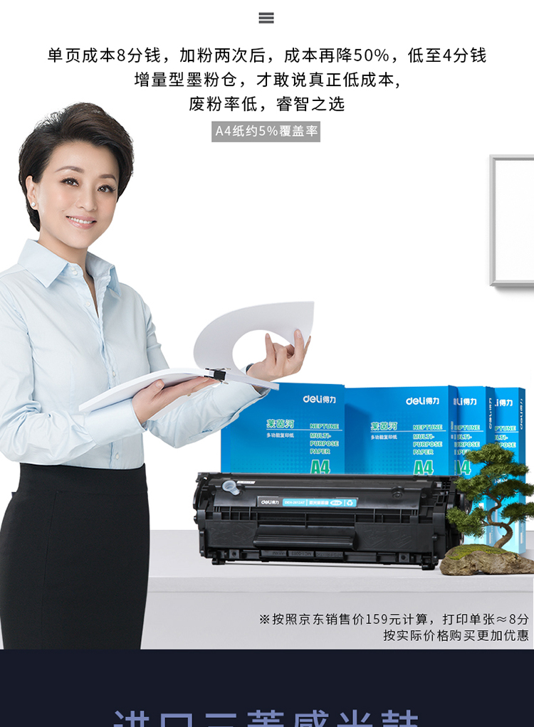 京东自营得力(deli)DEH-2612AT 易加粉硒鼓 (适用惠普HP1020plus M1005 1010 1012 1015 3050 M1319f 佳能2900/3000)